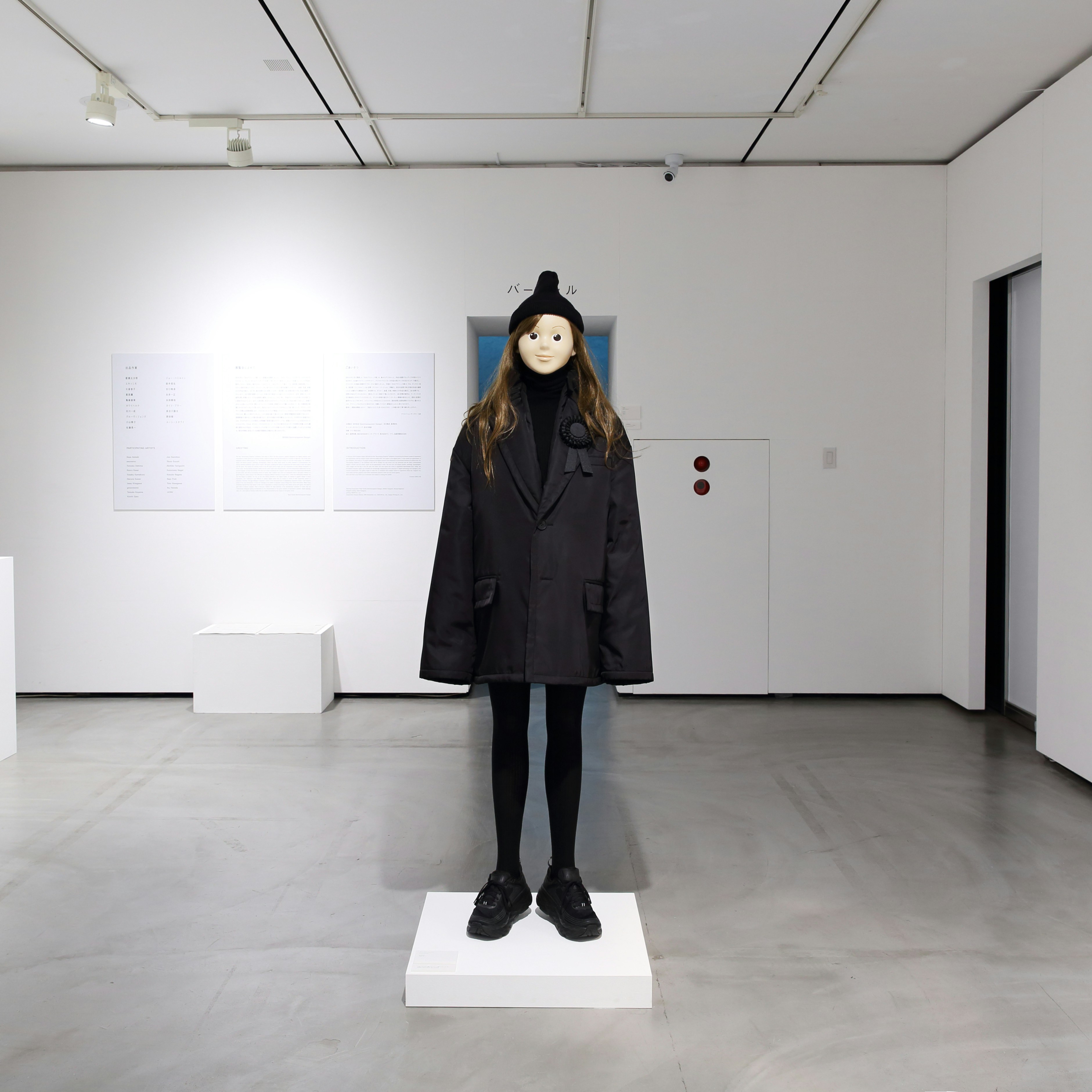 2部屋を使って展開する本展。奥の部屋に歩みを進めると、デザイン集団「groovisions」の着せ替えキャラクター「Chappie(チャッピー)」が来場者を迎える。髪型、服装、性別を変幻自在にできるキャラクターであり、マネキンとなったチャッピーが纏うのは、PRADA、HOKA ONE ONEといったアイテム。スタイリストの長谷川昭雄が特別にスタイリングを行なっている。