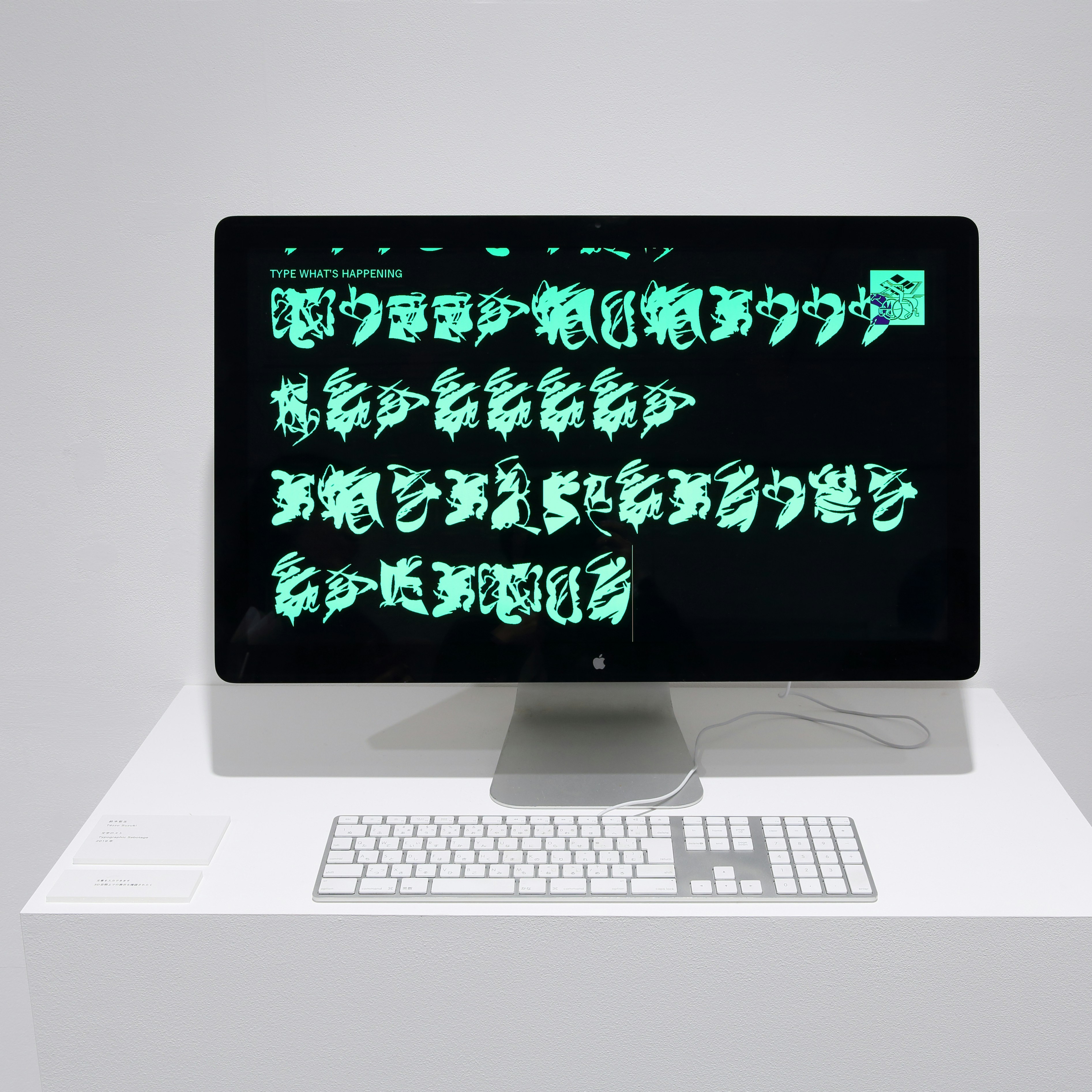 そのほかに、テクノロジーと身の回りの素材を生かして映像、彫刻、紙媒体やデジタルメディアに複雑な構造を生み出すアーティストのジョー・ハミルトンによる《Regular Division》、作品や展示を成立させるために用いるがゆえに周縁的とされる技術・制度的仕組みに着目した作品を手がけるアーティストの永田康祐による《inbetween》、そして、目の前にあるキーボードを使い、実際にタイポグラフィに打ち込むことのできる、グラフィック・デザイナーの鈴木哲生による《文字のスト》といった作品が並ぶ。