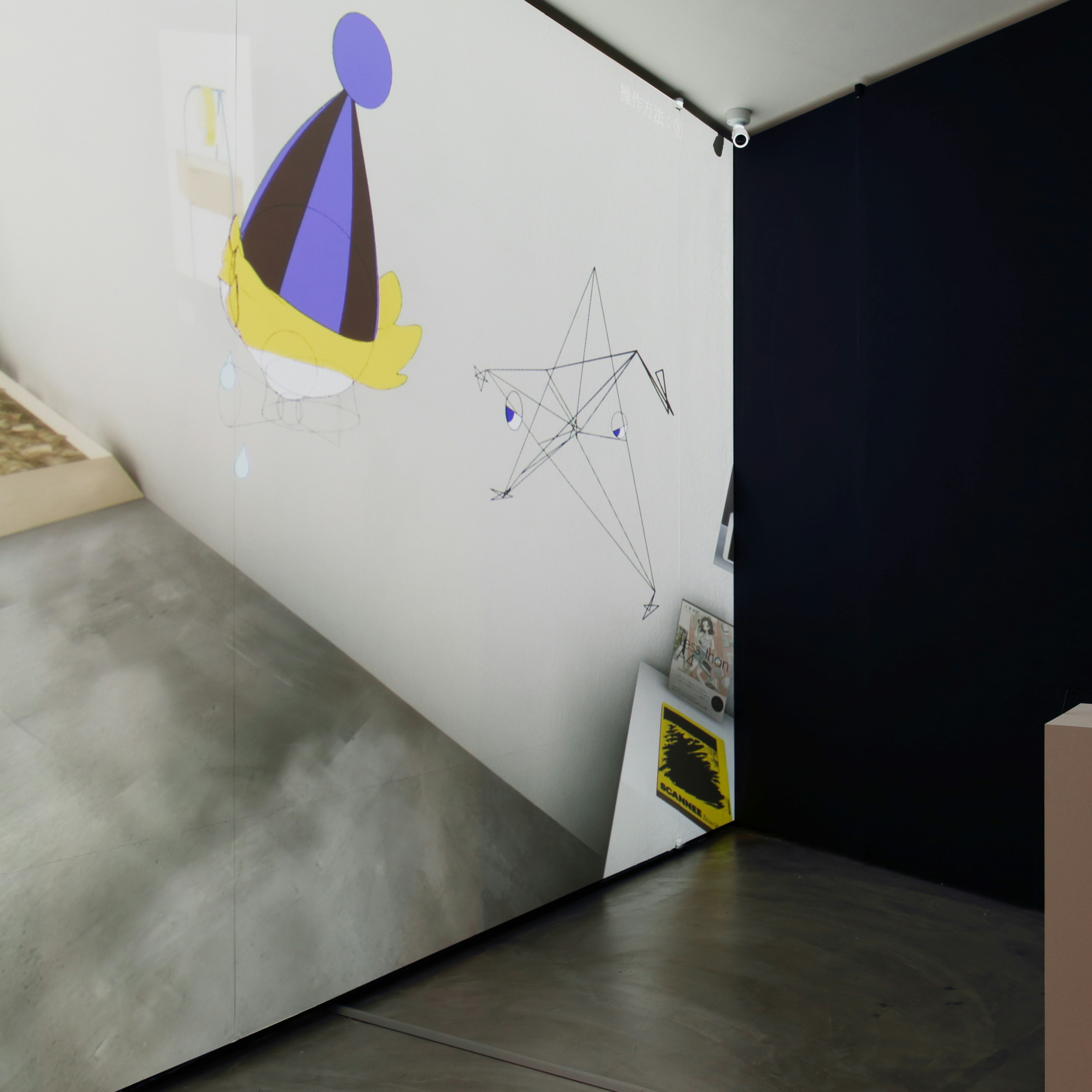 こうした作品と並置されるのが、グラフィックデザイナーの佐藤晃一や葛西薫によるグラフィックワークだ。葛西による《泣き虫ピエロ》は、3Dをベースとしたグラフィックの映像作品であり、本作を含む多くの出品作は、本展最終章である「種明かし」を見ることができる。それは、「同じ作品を実空間と仮想空間の両方で見ることができる」という本展の特徴ゆえであり、そのことにも留意しながら作品を鑑賞してほしい。