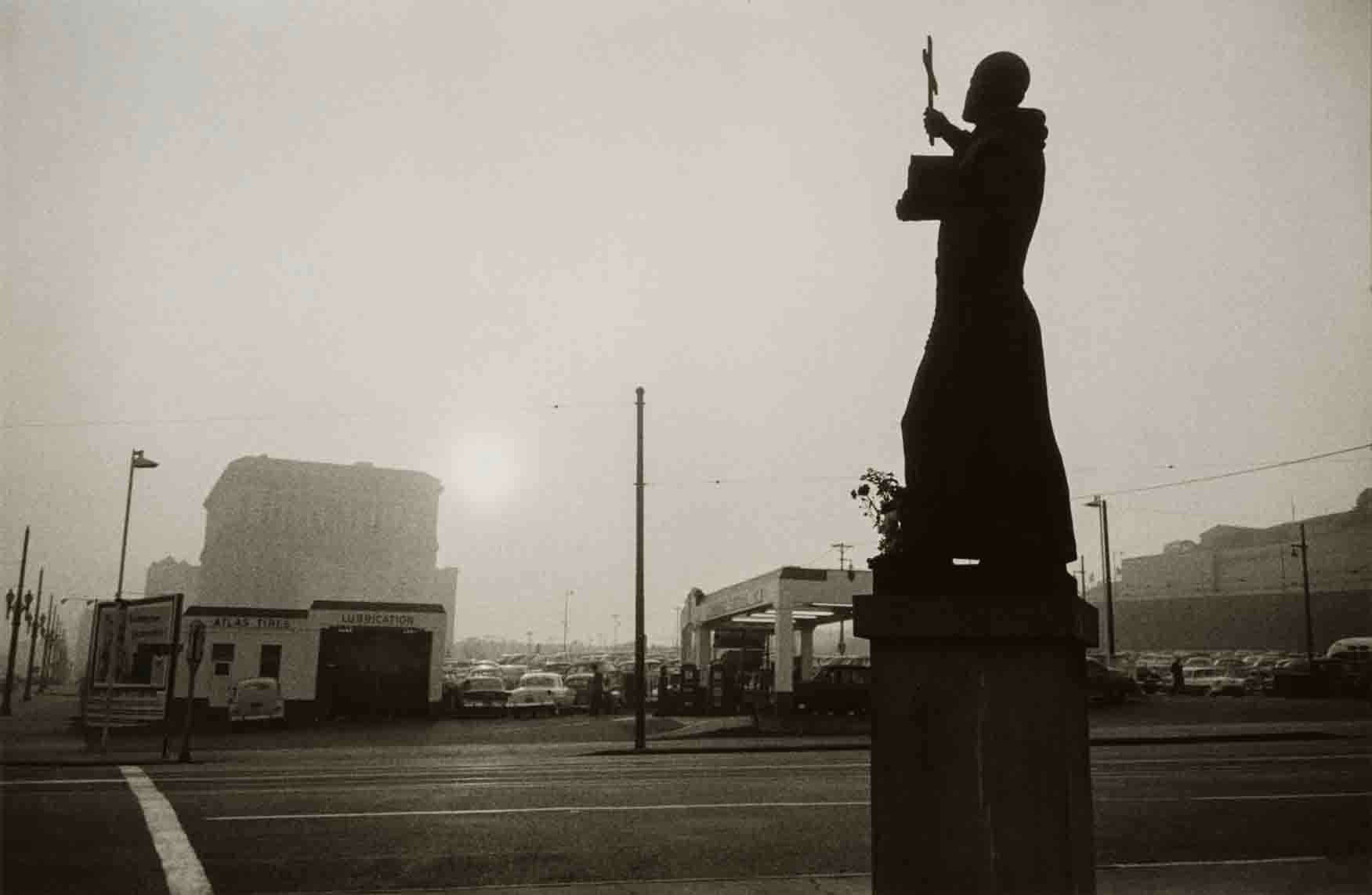 『The Americans』より、《聖フランシス、ガソリンスタンド、市役所 ‒ ロサンゼルス》 1955 © Robert Frank from The Americans