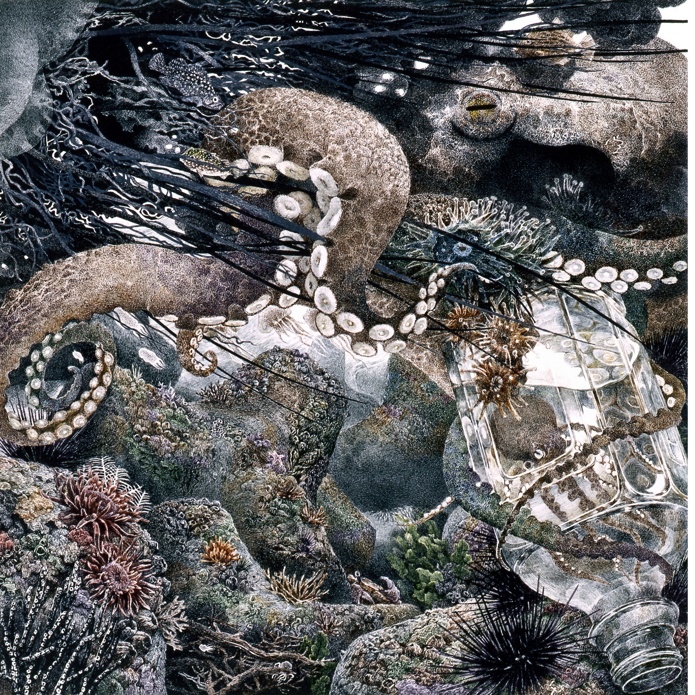 そして「奇想」では、丸ペンとカラーインクによって創造力豊かな綿密画を超絶技巧的に描き出してきた池田学と、プログラマー、エンジニア、建築家、CGアニメーターなどからなる「ウルトラテクノロジスト集団」のチームラボの作品がそれぞれに向かい合う。