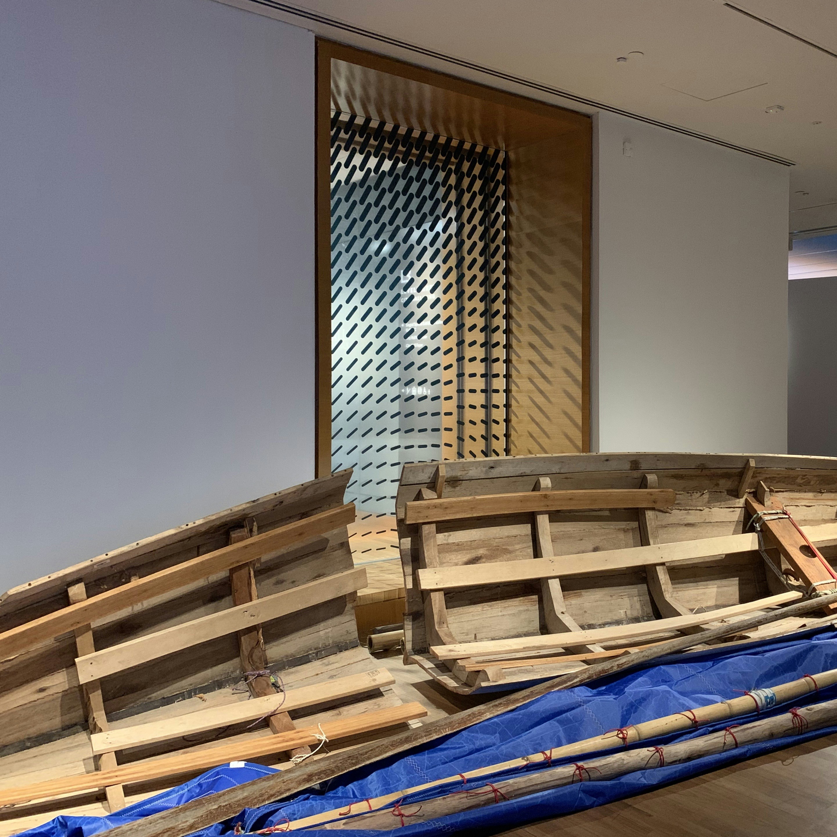 シンガポール出身で、現在東京を拠点にするアーティスト、デニス・タンの《Many waters to cross》(2019)が見せるのは、設計図を使用せず、東南アジアの伝統的な競艇「コレック」を8ヶ月以上かけて公共の場で制作するパフォーマンス・プロジェクト。試行錯誤しながら、なくなりつつあるコレックづくりの技術を再現しようとする行為は、忘れられていた記憶や知識を復活させる試みでもある。