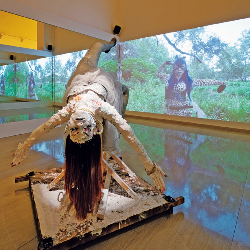 「共生的社会」のセクションでは、館長・堤たか雄がキュレーションを務め、ブックアーティストの太田泰友が、本と建築の共通点を「宇宙観」に見出し、都市の建築に巨大な本が寄生する姿を作品化。さらにダンスの一形態のヴォーギングとSNSを基軸に、マイノリティの問題に切り込む磯村暖のインスタレーションを紹介する。