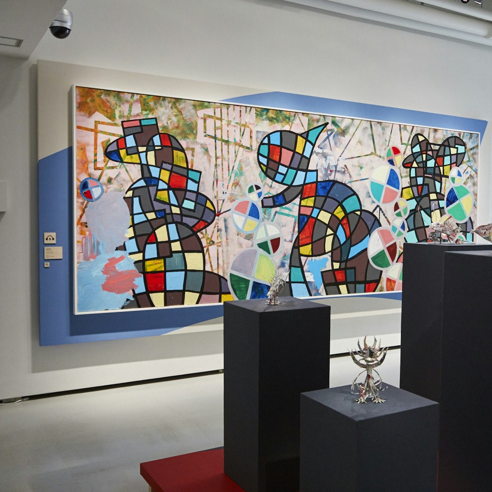 幅4メートルのペインティングは、4月に開催されたワークショップ&ライブペインティングで、本田雅啓と一般の参加者約80名によって描かれた作品だ。本田雅啓(1983年福岡県生まれ)は、高校卒業後、アート活動を仕事とする施設で制作を続け、コラボレーションも多数行っている。今回のワークショップでは、参加者が渋谷の街を歩いて自分の感じたことをキャンバスにペンキで描き、その上から本田がローラーで色を重ねたり輪郭線を描いたり、ハチ公やビルなどの幾何学的モチーフを描いた後、参加者がまた色を塗ったりと、絵を変化させながらできあがった。美術を学んだ経験や障害の有無にかかわらず、異なる人々が同じ作業を通じて心を通わせた象徴的な作品である。併せて、制作過程を撮影したドキュメンタリームービー「シブヤノマチナミ」(クリエイティブディレクター・撮影:池田晶紀)も上映。