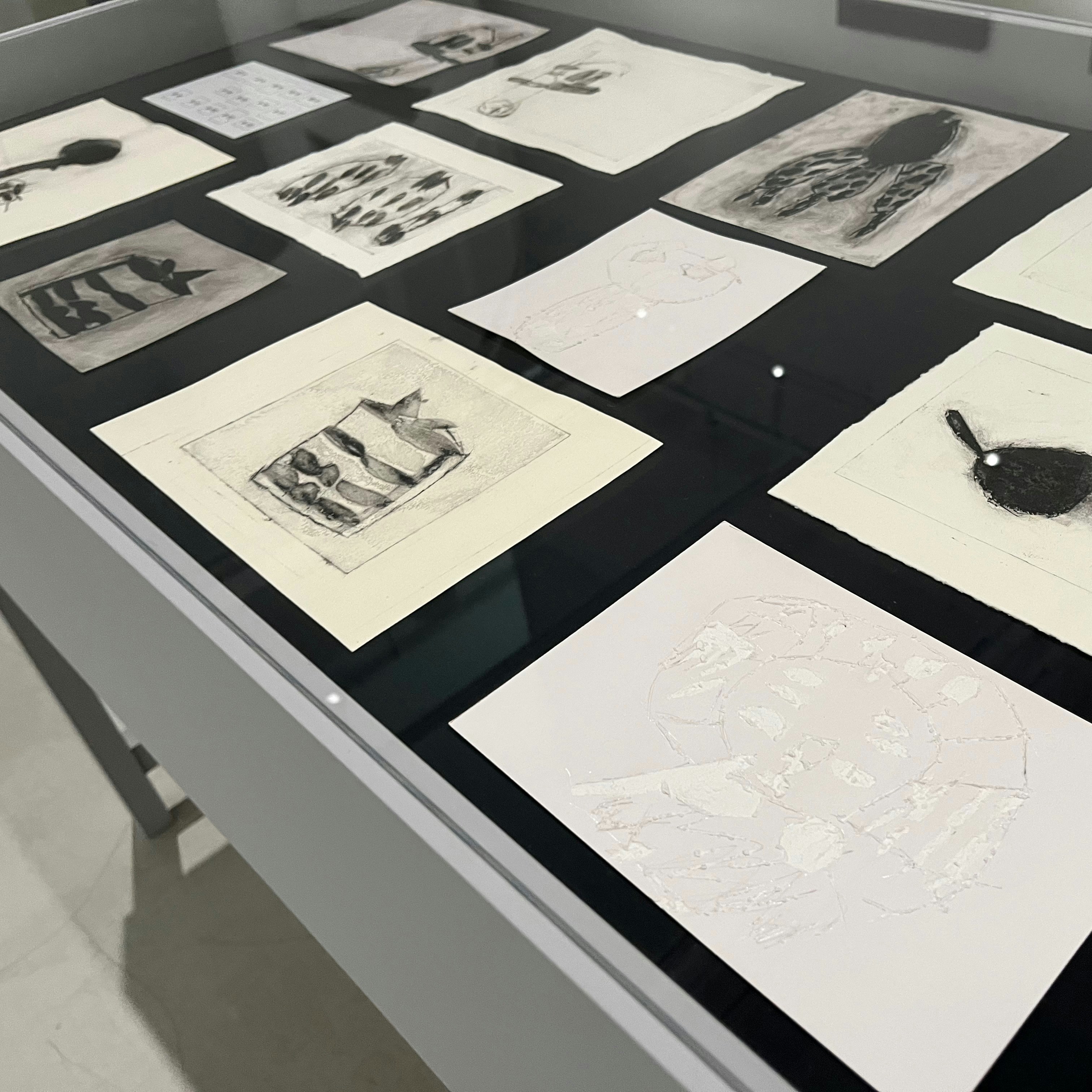 堀口の作品について、門は「刷りによるニュアンスの違いにも着目してほしい」と語る。堀口の作品の刷りは施設職員の手によって行われ、堀口の創作の痕跡を最大限引き立たせるように細心の注意をもって行われている。それぞれの職員が堀口の創作の魅力をどのように見出し版画にしたのか、その差異も作品のおもしろさとなっている。