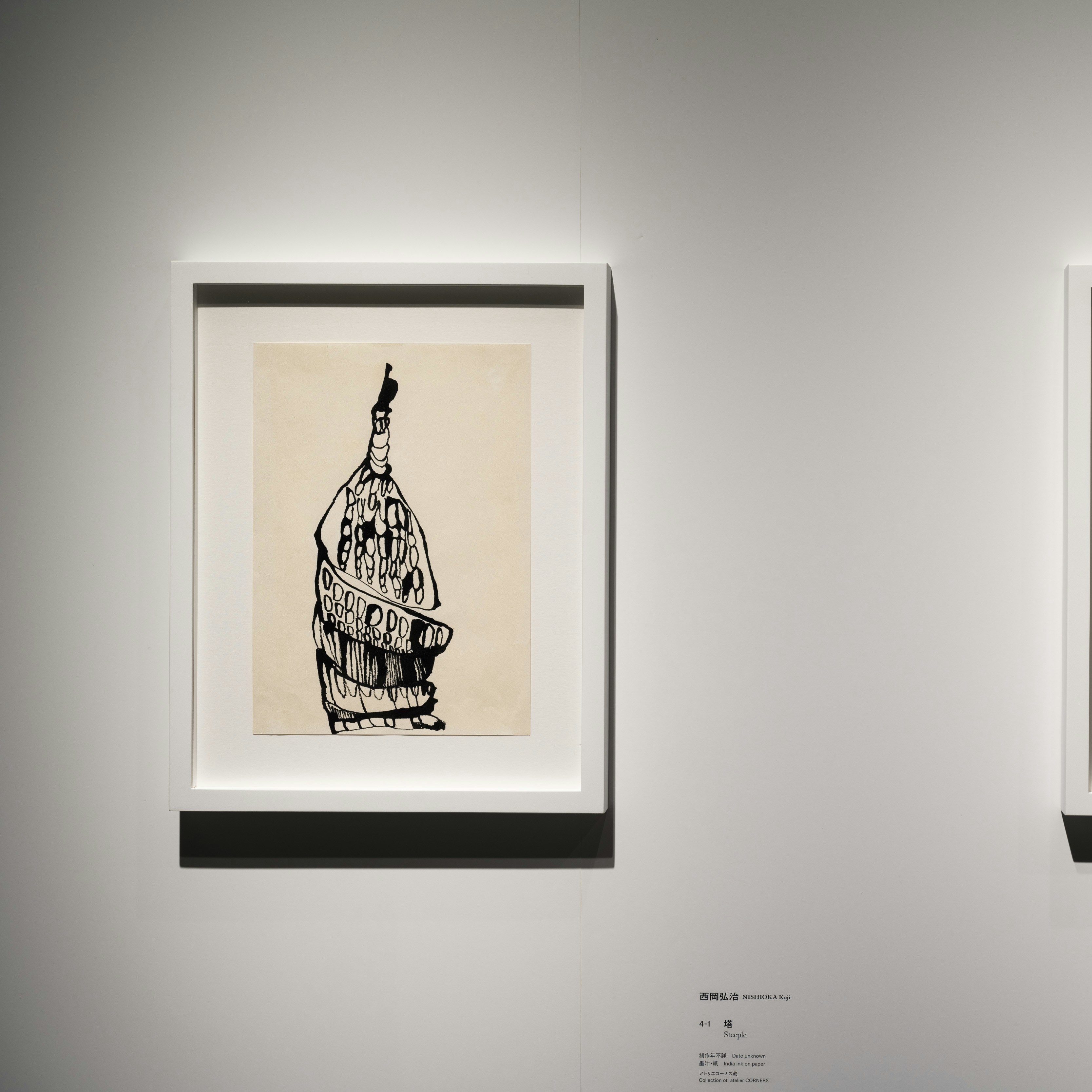 西岡弘治は1970年大阪府生まれで、2005年に開設されたアトリエコーナス(大阪府)の初期メンバーとして創作活動を開始した作家だ。西岡がおもに描画するモチーフは、自身が気に入っている楽譜だ。幼いころよりクラシックに親しんでいたという西岡は、施設にピアノと楽譜が寄贈されて以来、楽譜をモチーフに豊かな描線で描いてきた。