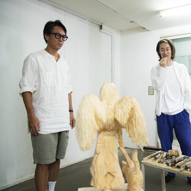 ──制作について飯沼さんにもう少しお話をうかがえればと思います。木と向き合って立体を削り進めていくときなど、大変な集中を要されると思いますが、制作中、どういったことを思考しているのでしょうか。