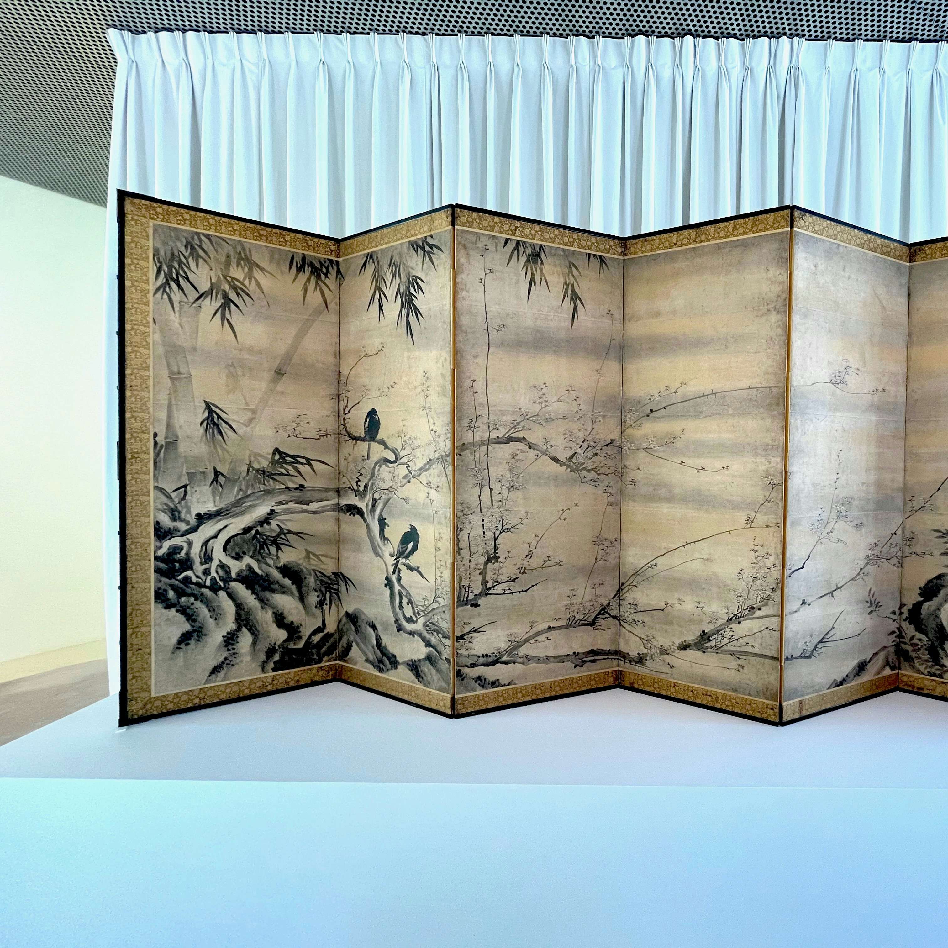 本作は水墨画が隆盛を極めた中国・南宋の時代より数多く描かれたこのモチーフが、室町時代の日本おいて引き継がれたことを示し、屏風というメディアが大陸から日本へともたらされ、独自の発展を遂げていった歴史を来場者に印象づける。屏風発祥の地、中国の上海での展覧会「Paraventi」ともひとつなぎとなった、屏風という文化のダイナミズムが想起される。