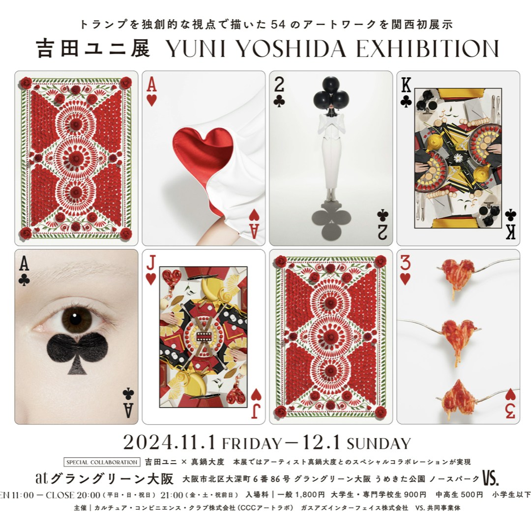 国内外で数々の著名アーティストやブランドと協働し、多岐にわたる分野で活躍するアートディレクター・吉田ユニ。その展示「PLAYING CARDS」が、11月1日から12月1日の期間、JR大阪駅前に新設された「グラングリーン大阪」内の文化施設「VS.」で開催される。