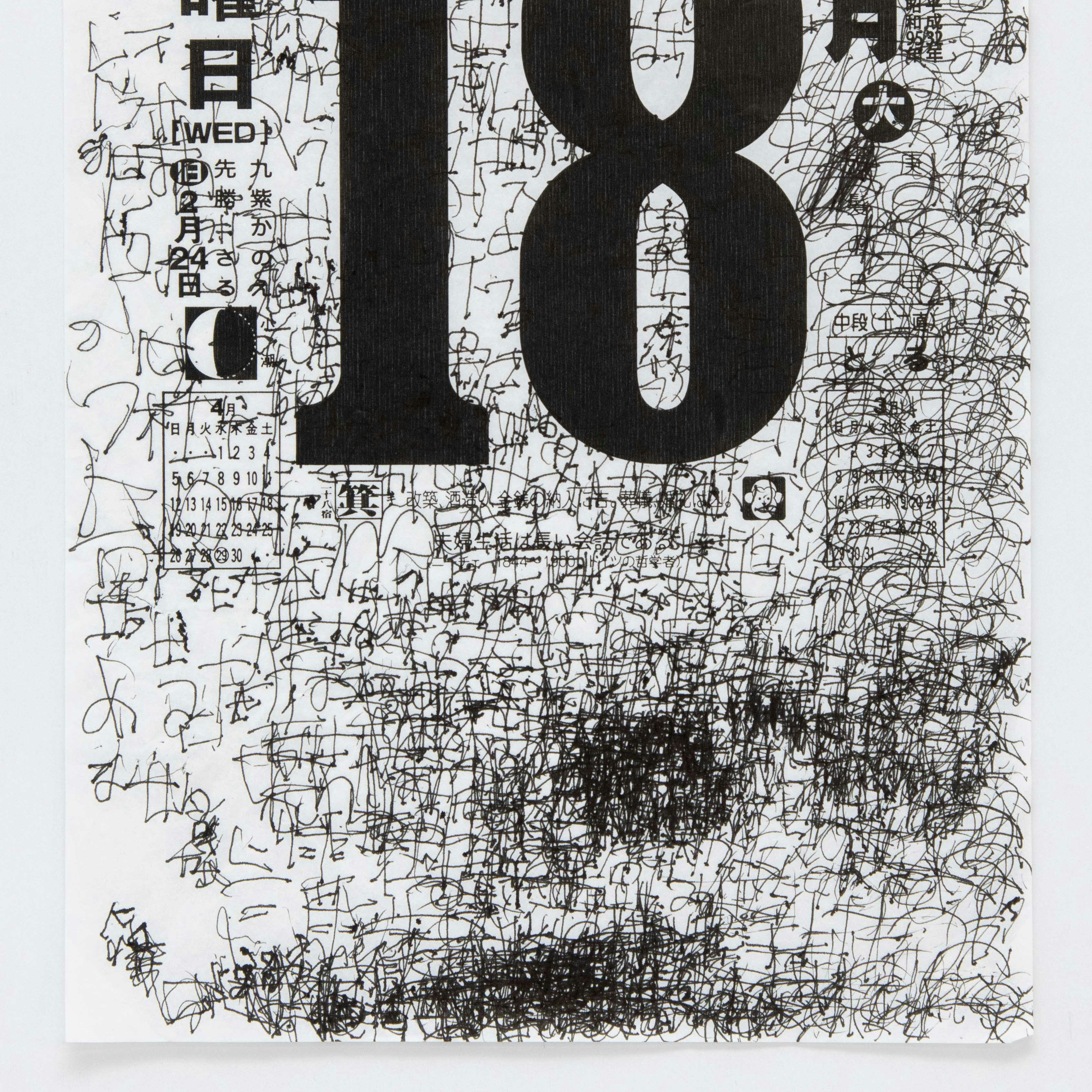 3つめのキーワード「ルーティン」では、「単位」を無数に繰り返すなど、驚くべき集中力で一つひとつの小さな行為の集積によって生まれる、圧倒的な力にフォーカス。ここでは、システマティックな手法で「ドット」を置き続ける森本絵利、世界を「数字」によって把握し書き出す柴田龍平、「釘」を打つことで精神の安寧を求める平田安弘、何かを満たすかのようにカレンダーに「文字」を重ねる松本国三の作品を展示。