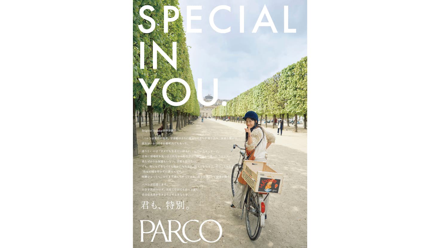 第24弾となる「SPECIAL IN YOU.」では、新たな環境のなかでチャレンジし続ける田中の姿勢にスポットを当てている。田中によるパフォーミングアートを軸としたプロジェクト「Rencontre au Jardin」の舞台であるパリの公園や 「Brigitte Tanaka」のブティック、そして自宅兼アトリエなどで撮影を行い、CM内の音楽は田中とも親交の深いパリ在住の音楽家・中島ノブユキが手掛けている。