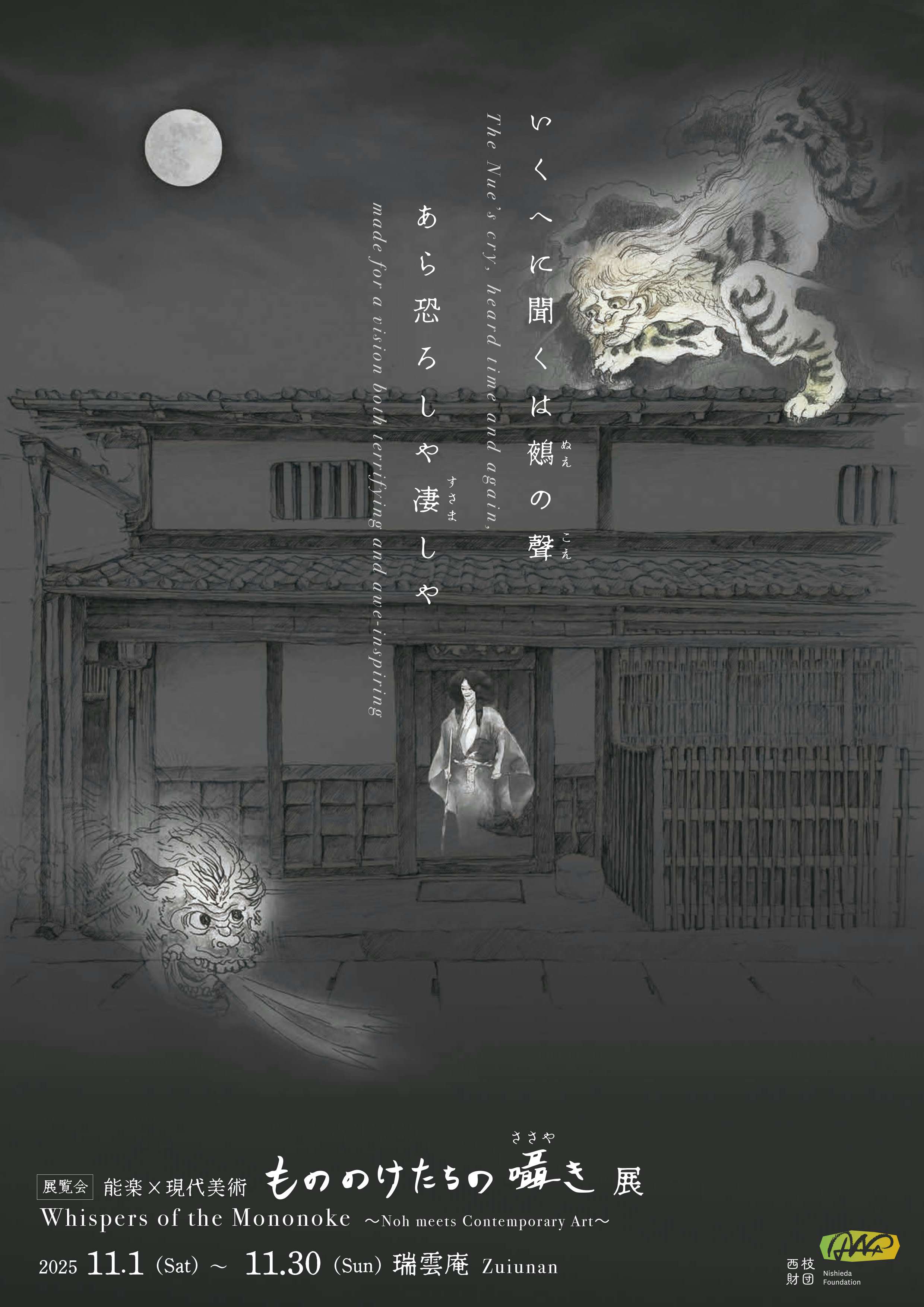 能楽と現代美術が出会い、見えない存在の気配を探る展覧会「もののけたちの囁き」展が、京都の瑞雲庵で開催される。会期は11月1日〜30日。