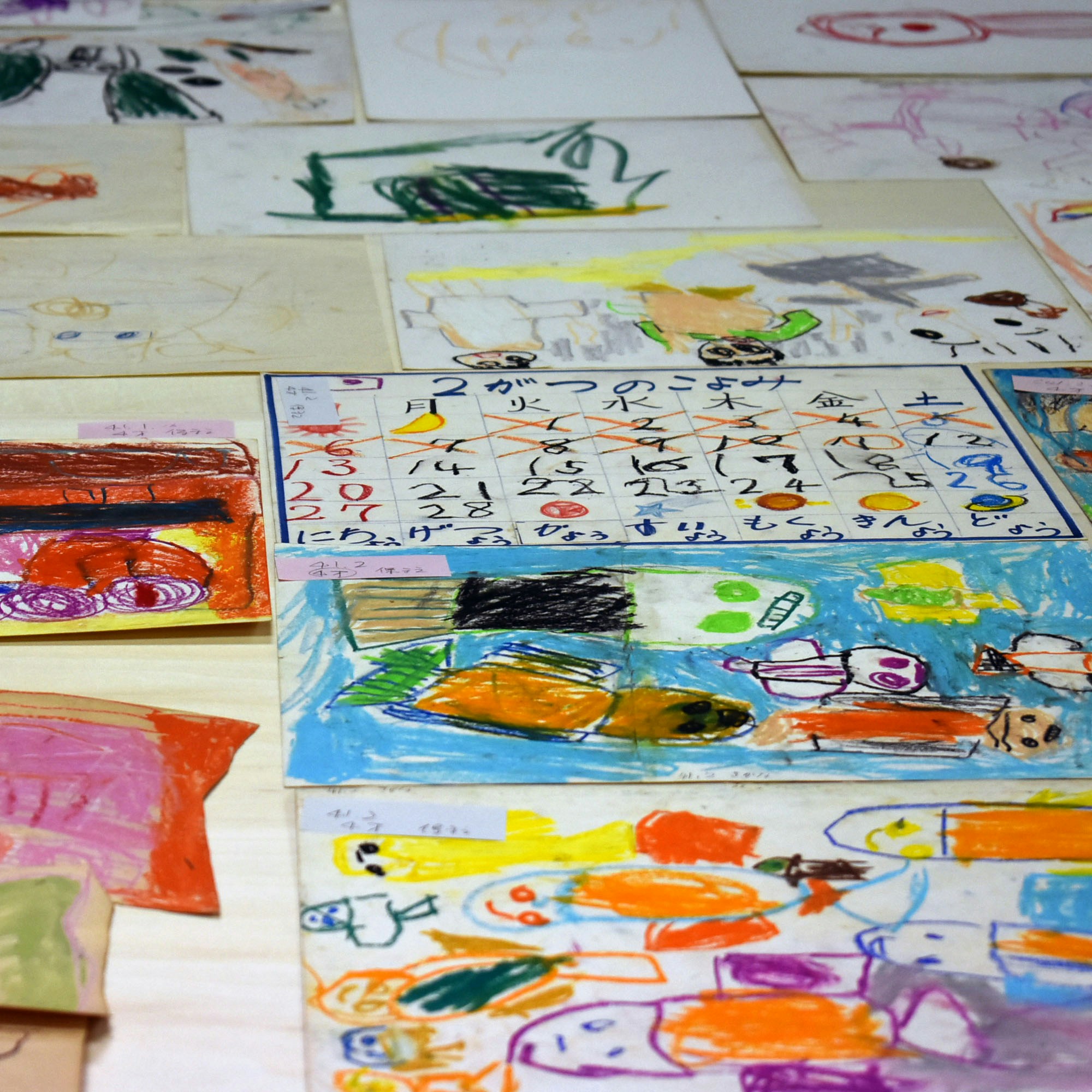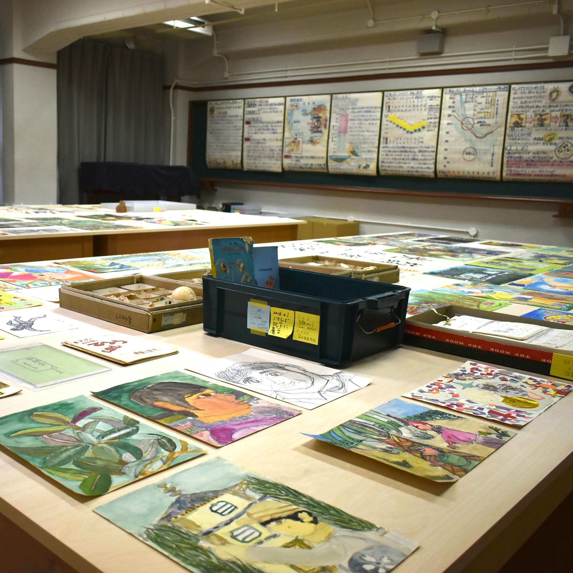 京都芸術センターでまず注目したいのが、京都を拠点に活動する中原浩大だ。90年代以降、レゴ・ブロックやプラモデル、フィギュアなどの既製品を用いた作品を展開し、近年では美術の範疇にとどまらない活動をしてきた中原。今回は《Educational》として3つの教室を使い、幼少期から高校時代までに中原が描いた絵、約600点を展示。京都芸術センターが元明倫小学校であったという歴史を踏まえ、自由研究の成果や、高校時代に自身の幼少期の落書きを模写したものまで貴重なアーカイブを見ることができる。