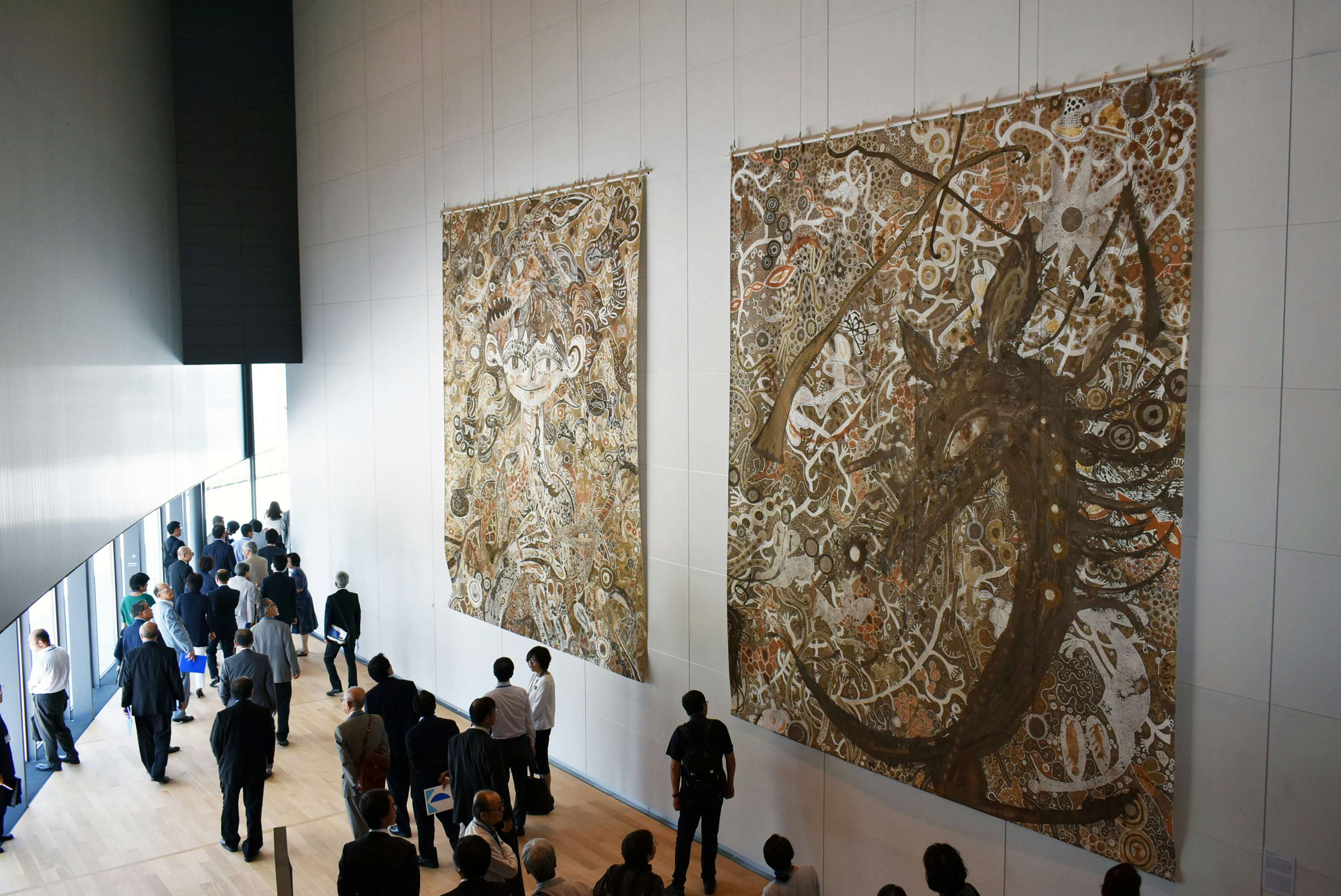 淺井裕介の巨大作品も見ることができる。左から《土の星の人》(2016)、《生きている自然》(2016)