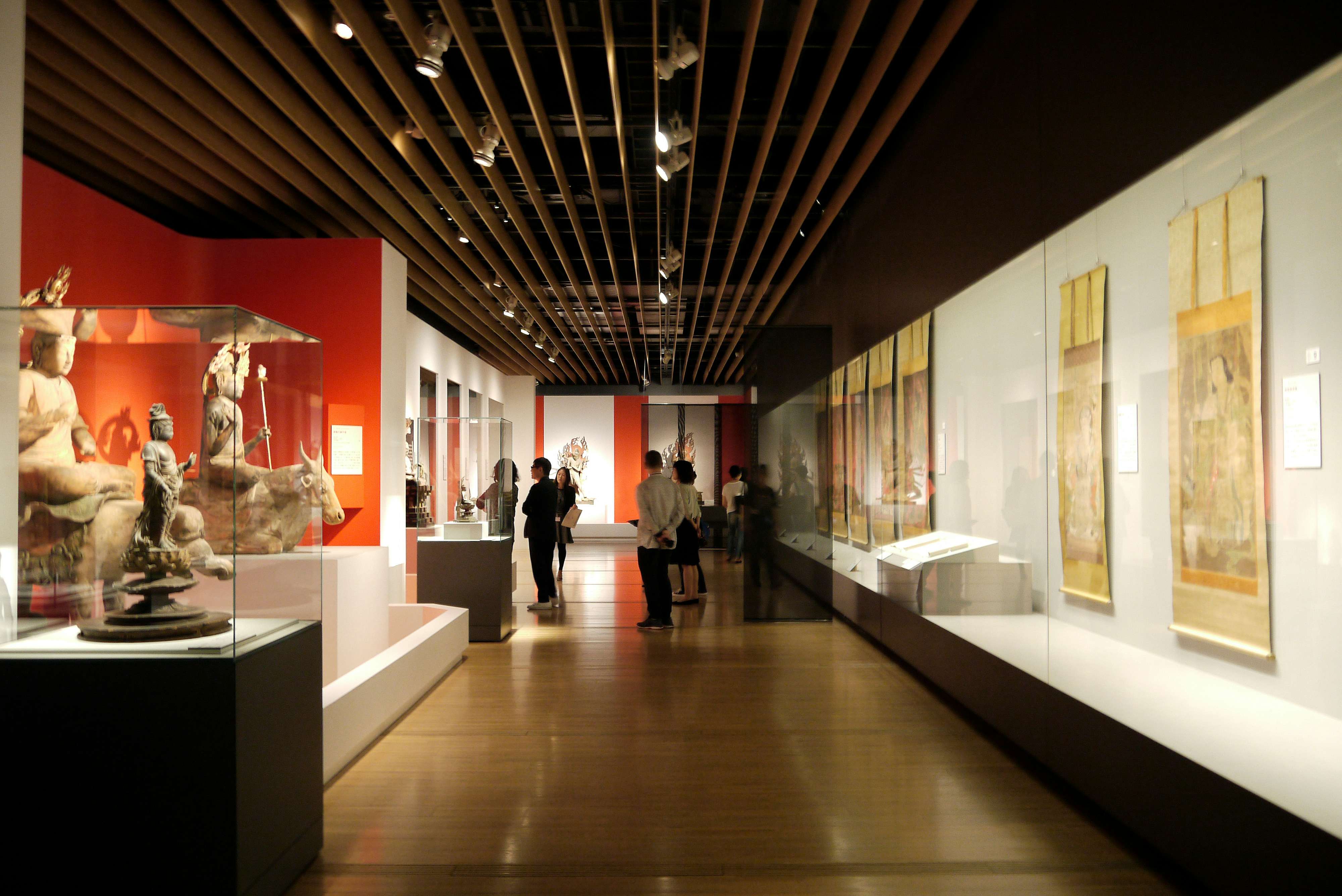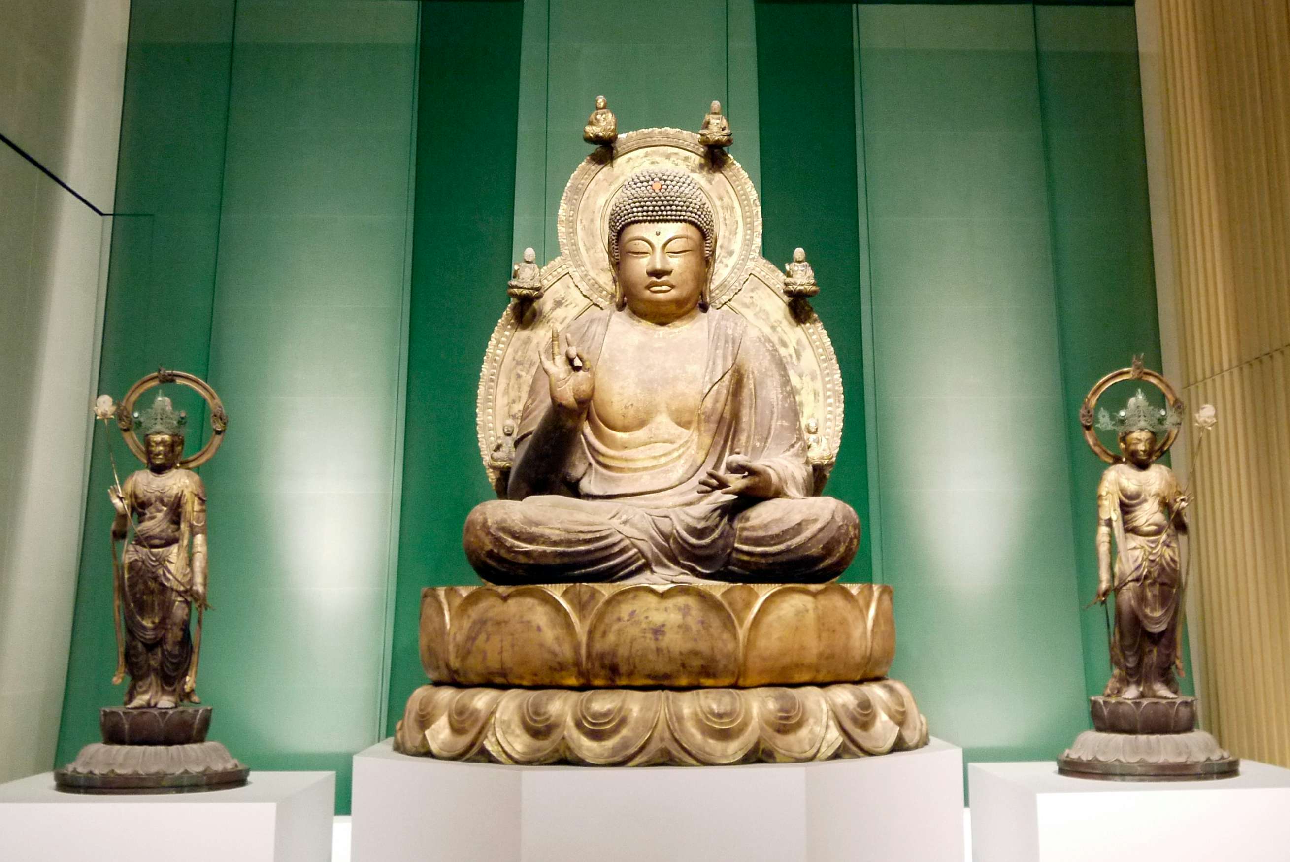 展示風景より。薬師如来および両脇侍像(10世紀、京都・醍醐寺)