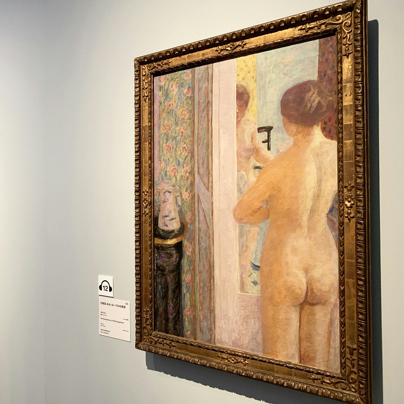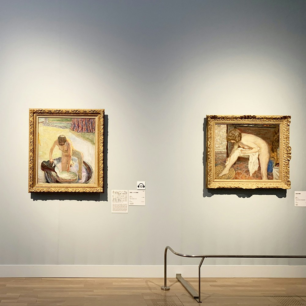 とくに「浴室の裸婦」の作品はボナールの友人でもあり、かかりつけの医師の妻でもあったルネ・モンシャティの自殺が関係するとも言われている。その制作背景に加え、光の効果を受けて様々な色の斑点で表現された肌や、その多くが立ち姿であるという独特の構図など、見るべきポイントは多い。