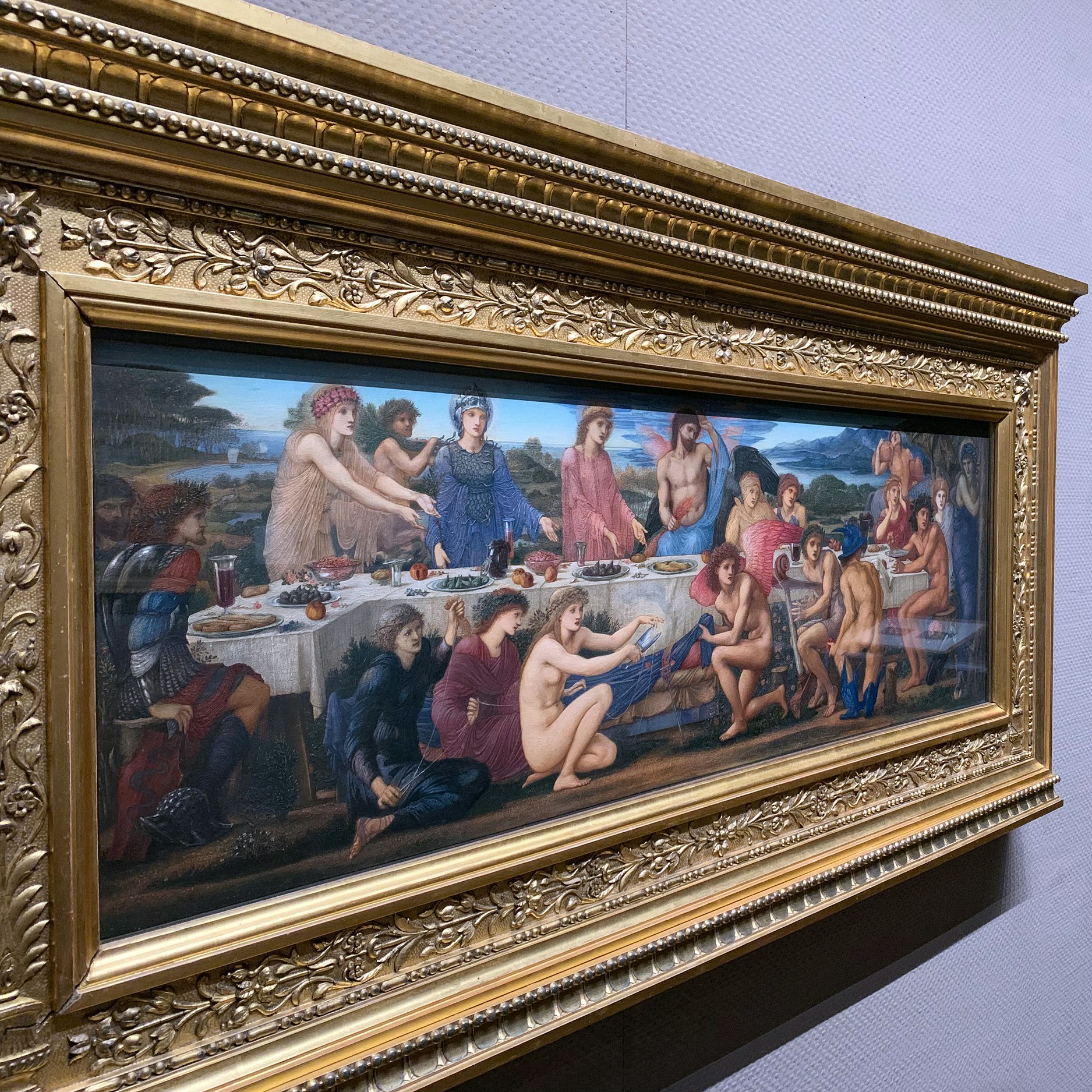 そして4章では、聖書、神話、文学の主題をしばしば扱い、つねに現代社会の平凡な現実から遠く離れたテーマを描いたバーン=ジョーンズにフォーカス。ラスキンが「もっとも美しい」と賞賛した《ペレウスの饗宴》や、ヨーロッパ古典芸術における裸体像を表現した《赦しの樹》などが並ぶ。