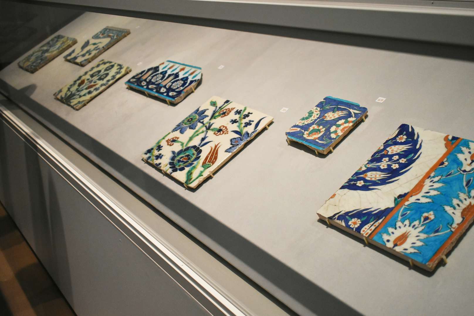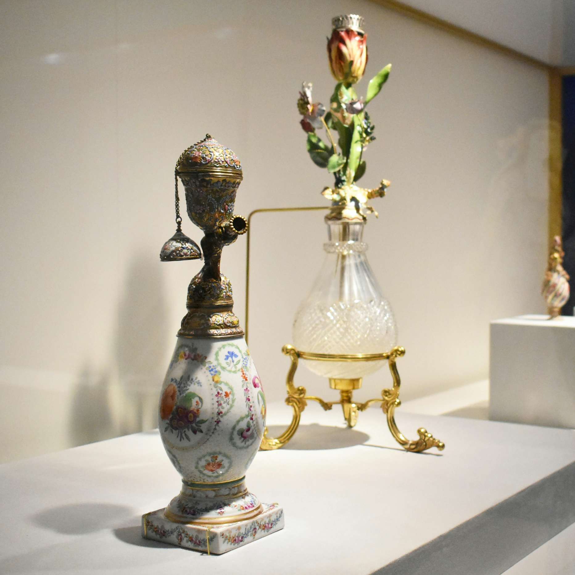 本展ではタイルや陶磁器のほか、細長い頸部が特徴的な《チューリップ用花瓶(ラーレ・ダーン)》(18~19世紀)や、チューリップを象った《水タバコ》(18〜19世紀)といった品々を紹介。「チューリップの宮殿」と呼ばれたトプカプ宮殿における華やかな暮らしを垣間見ることができる。