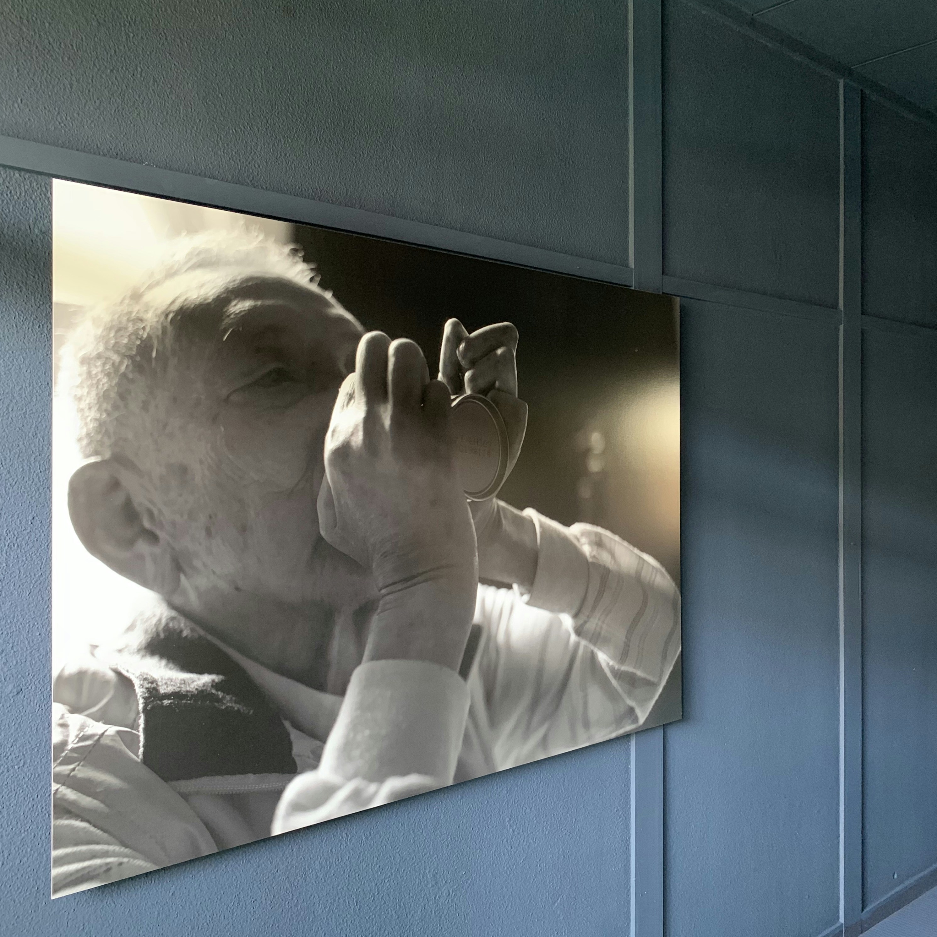 「国立療養所大島青松園」がある大島では、その歴史や記憶を振り返るための作品やプロジェクトが展開している。例えば、夏会期の新作となるやさしい美術プロジェクトの《稀有の触手》(2019)は、ハンセン病回復者の姿をとらえる作品のひとつだ。大島の歌人・斎木創の歌「唇や舌は麻痺なく目に代る稀有の触手ぞ探りつつ食う」からインスパイアされた本作では、島内の回復者たちがカメラや自助具を使う様子を映した写真や、彼らが使った生活用具を展示している。