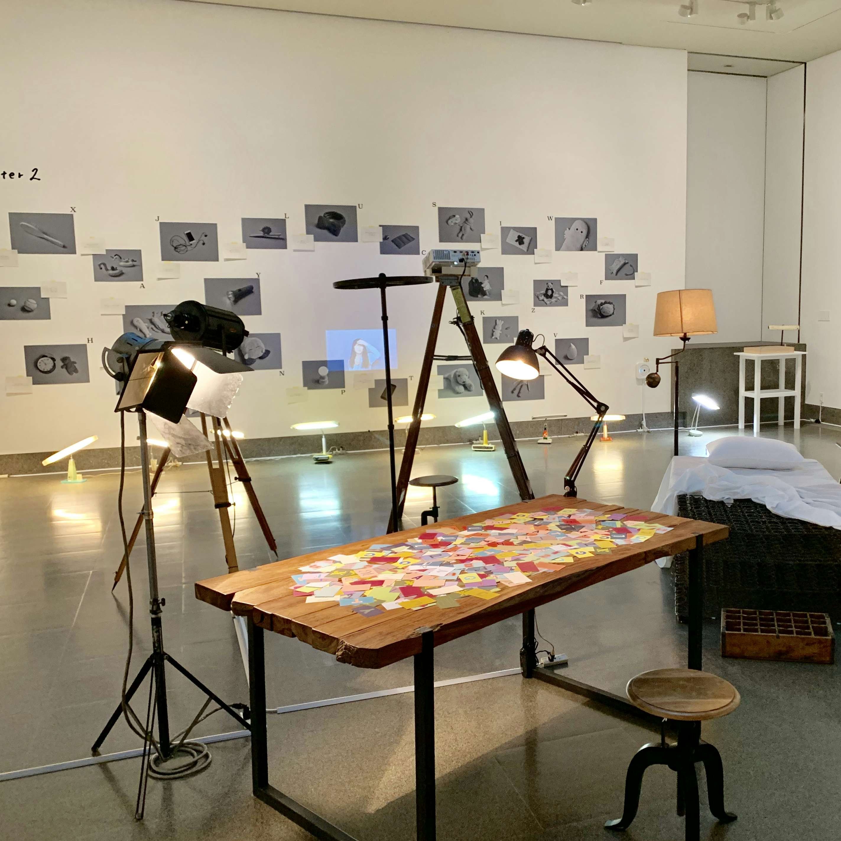 展覧会のクライマックスを飾るのは、チェルフィッチュによる「見る」「見られる」を強烈に意識させるインスタレーション作品《The Fiction Over the Curtains》や、マームとジプシーの新作《ひびの、A to Z》。26名の人物が登場する《ひびの、A to Z》では、人々がそれぞれにどんな人格を持ち、どのような服を選ぶのか、chapter1〜3を通してゲーム感覚で見ることができる。