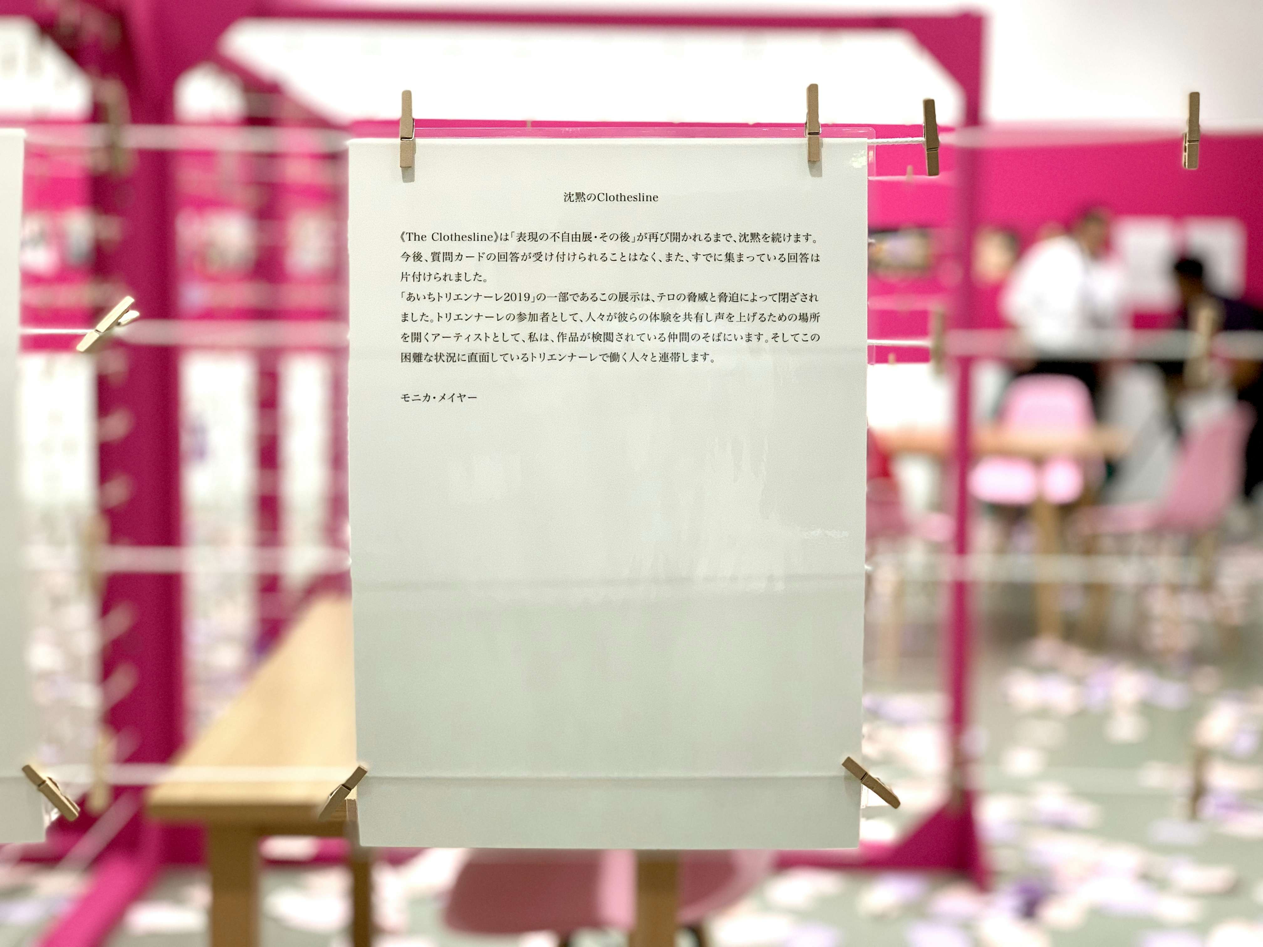 作品名と展示内容が変更されたモニカ・メイヤー《沈黙のClothline》(2019)