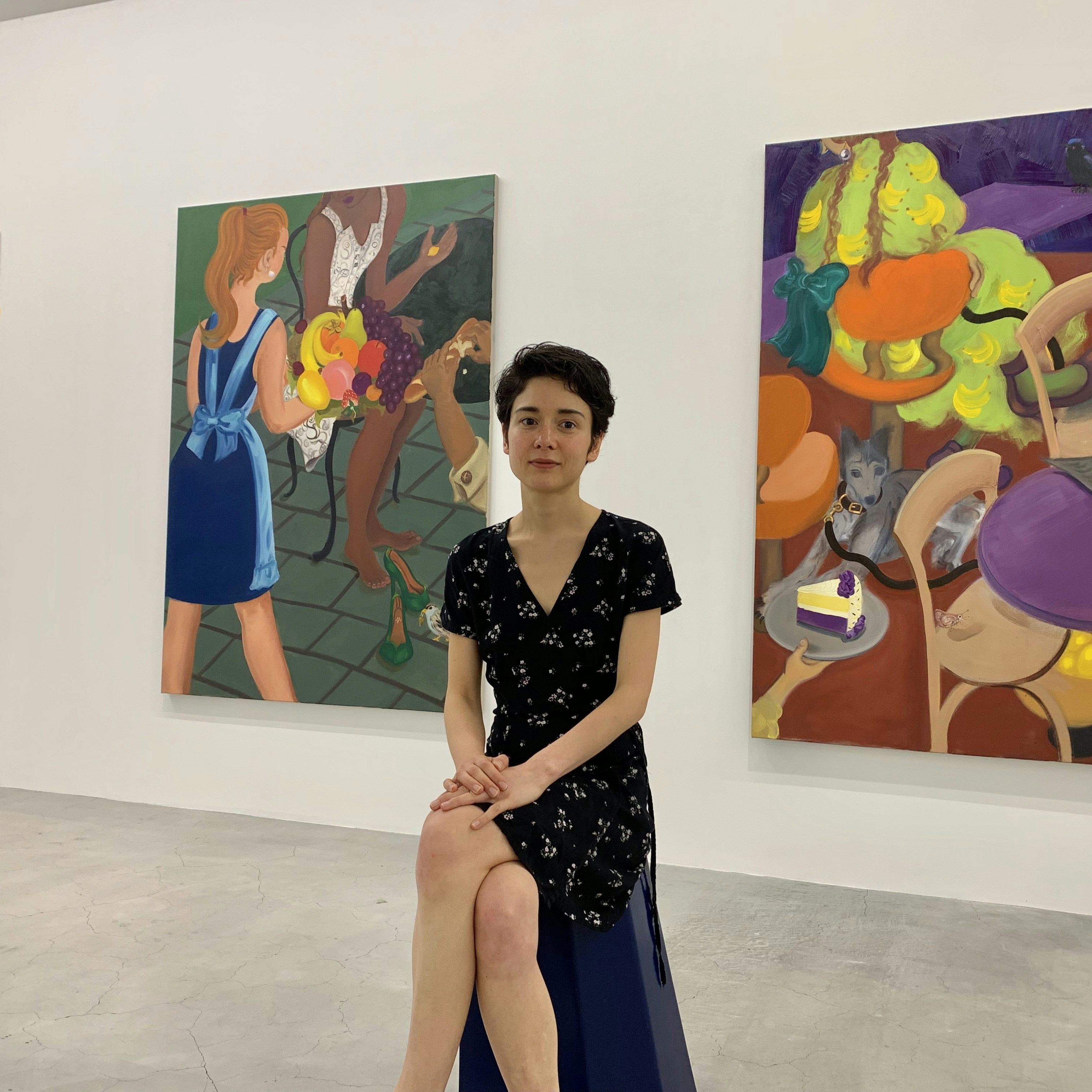 ファーラは、2016年頃よりヨーロッパで個展やグループ展を行うことで知られるようになり、18年にロンドンの現代美術館「サーチ・ギャラリー」に作品を収蔵。ケーキや犬、バゲットを持つ女の子など、日常でふと目にした場面を、大きな余白とともに、浮遊感が漂うように描いてきた。