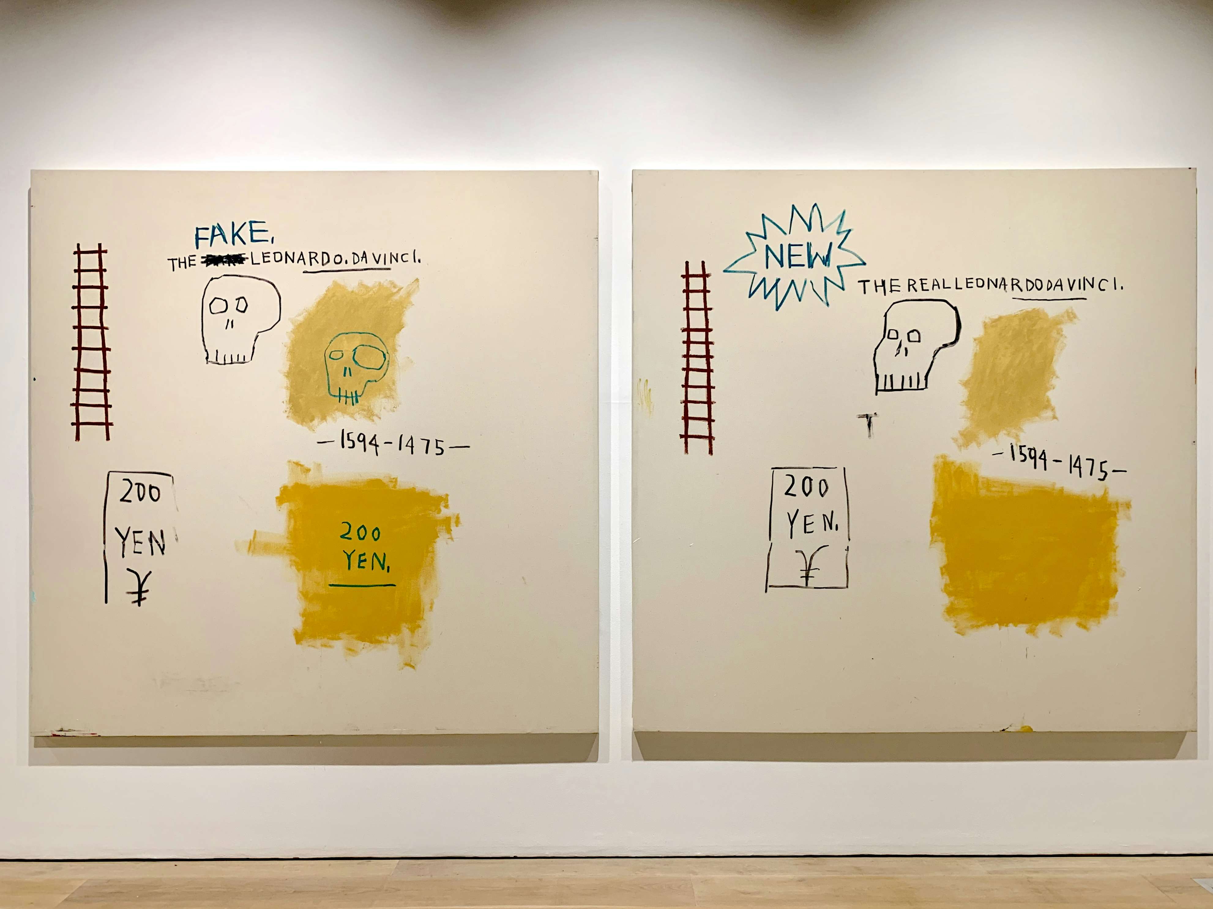 展示風景より、左からジャン=ミシェル・バスキア《偽り》《ニュー》(ともに1983) Artwork © Estate of Jean-Michel Basquiat.Licensed by Artestar, New York