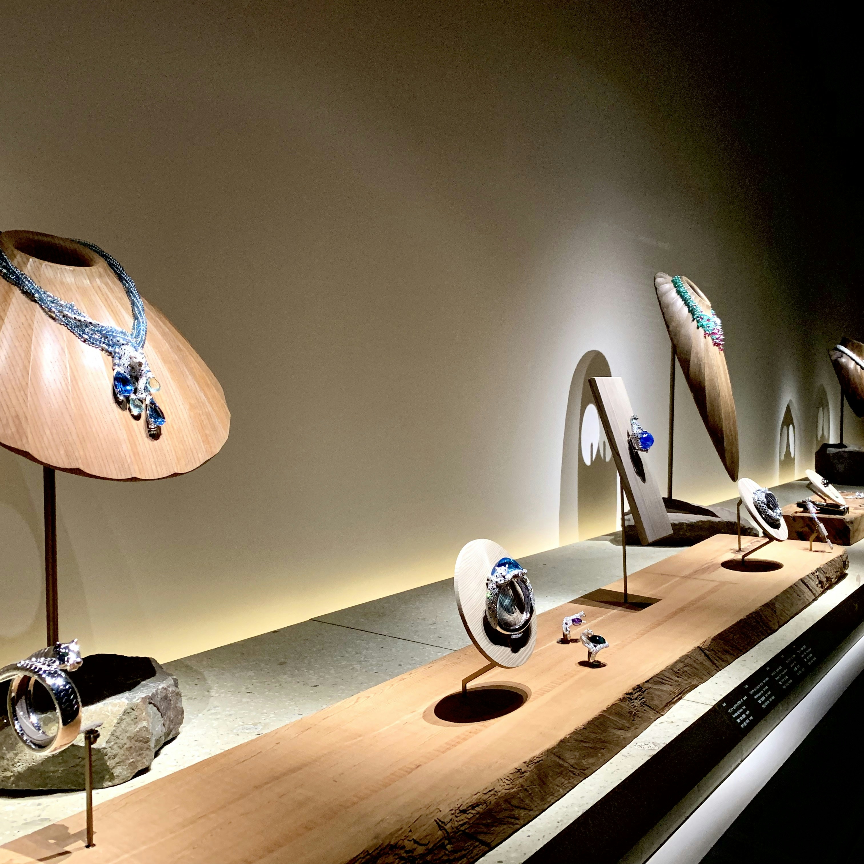 また眩い宝飾品を支えるデコルテや腕などを模した「トルソー」にも注目したい。これらは仏師による特注品で、屋久杉や神代杉などを素材として使用。すべてが手づくりのユニークな存在だ。