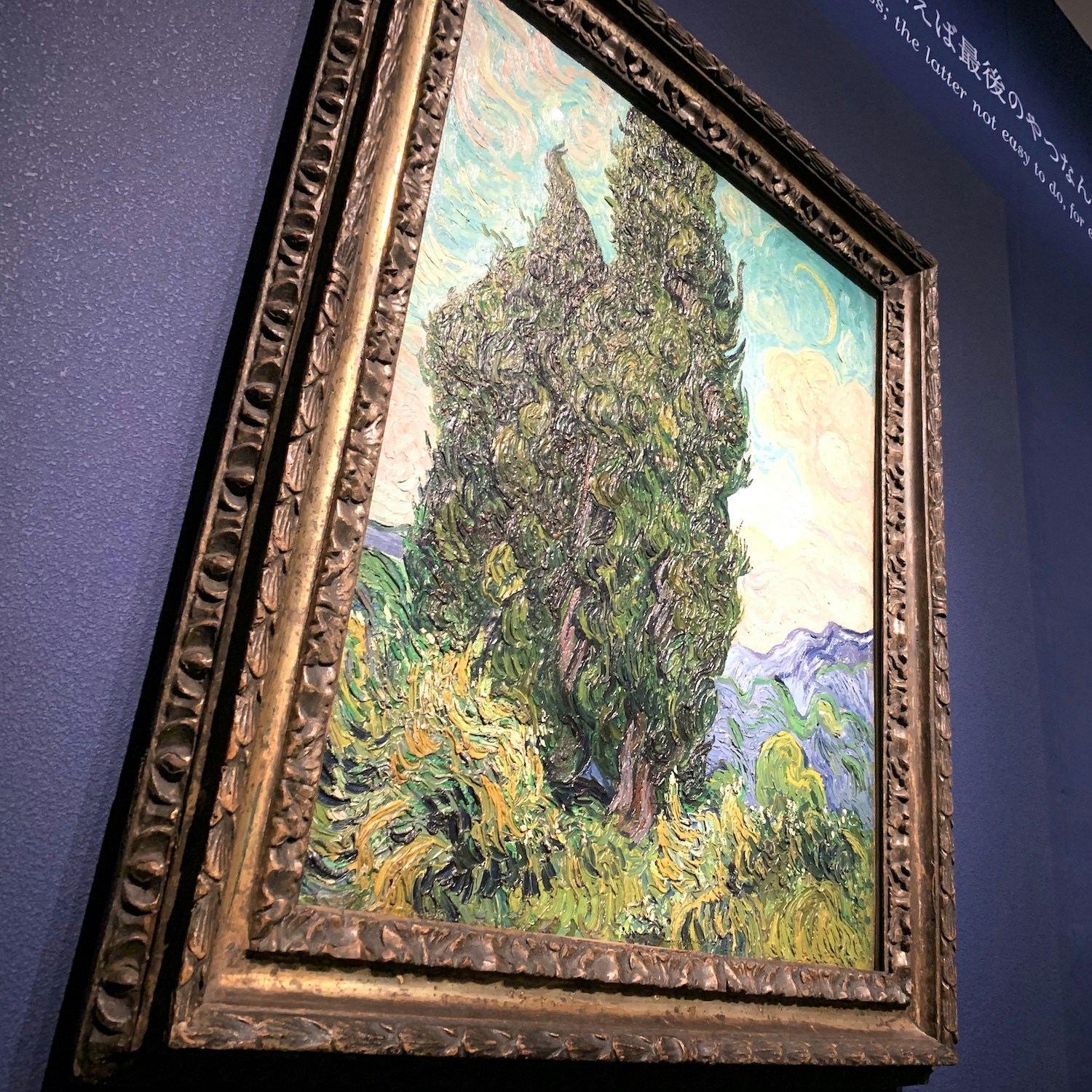 墓場に植えられる糸杉は、死の象徴。ゴッホはこの糸杉のシリーズを合計3点描いており、《ひまわり》と匹敵する連作だと言われている。