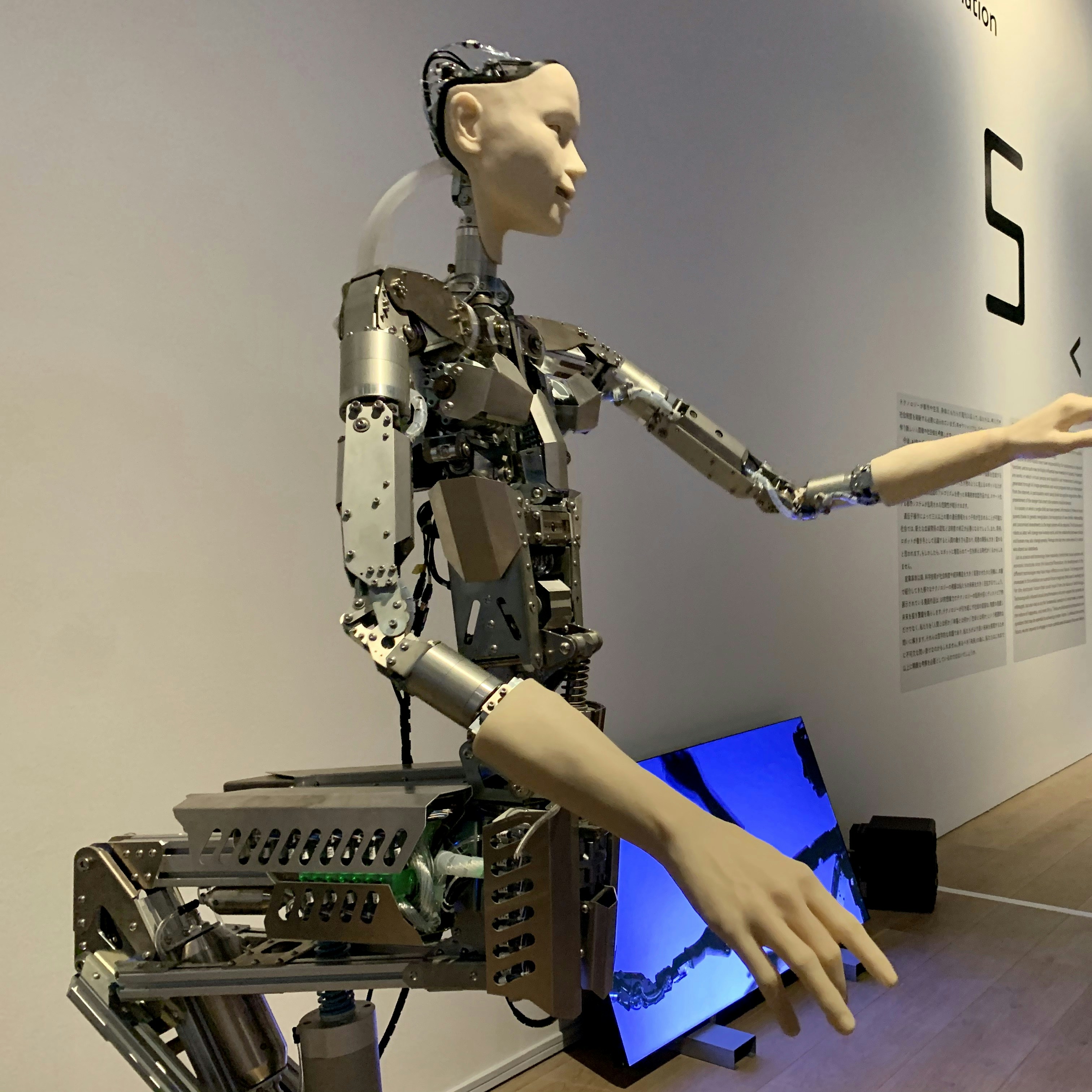 アンドロイド《オルタ3》(2019)は、「生命とは何か」をテーマに開発された作品。自律した動きと、外部情報に呼応するニューラル・ネットワーク(神経回路網)の相互作用によって動き続けるオルタ3は、自身の行動の記憶や発声も可能で、アンドロイドであるにも関わらず「人間」を強く感じさせる。