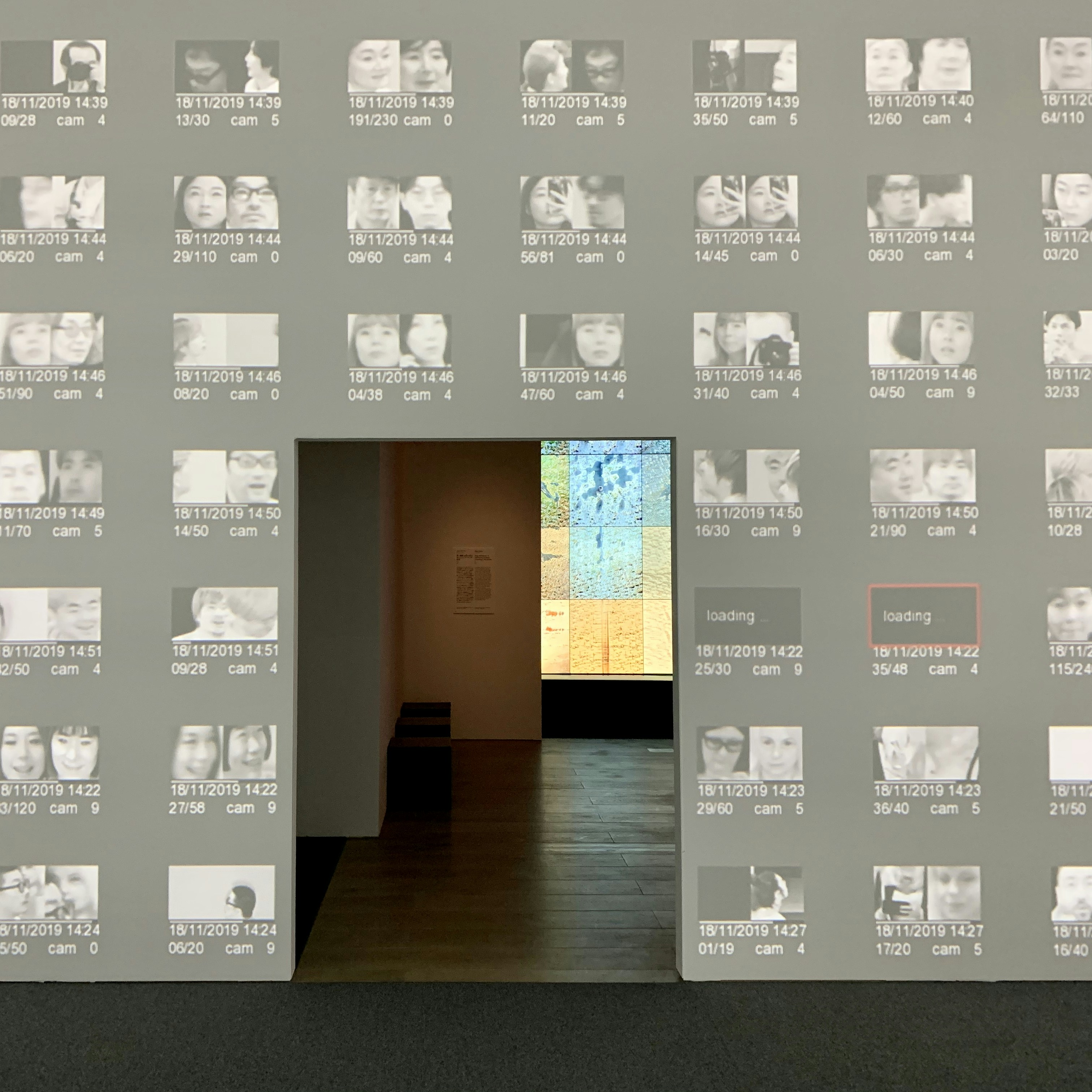 体験型のインスタレーションとしては、ラファエル・ロサノ=ヘメル&クシュシトフ・ウディチコ《ズーム・パビリオン》(2015)をぜひ体験してもらいたい。部屋に入ると来場者の顔が大写しされ、それが記録されるとともに、同時に入った他人同士をコンピュータが判断し、マッチングを行う。監視カメラが至る所に設置された現代において、人間はどう行動すべきかを否応なしに意識させる作品だ。