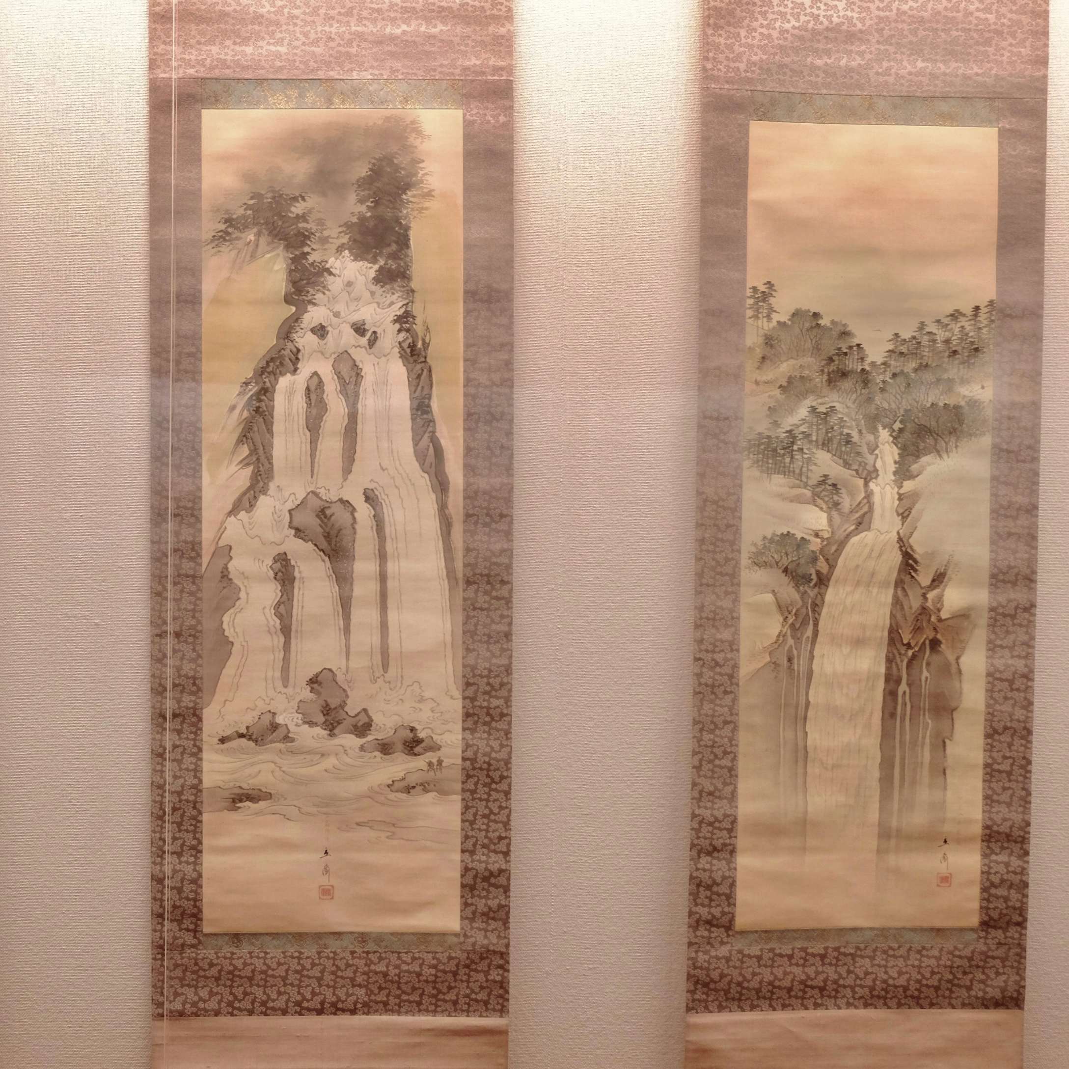展示風景より、左から《日光山裏見ノ滝》、《日光山霧降ノ滝》、《日光山華厳ノ滝》(1849〜51頃)