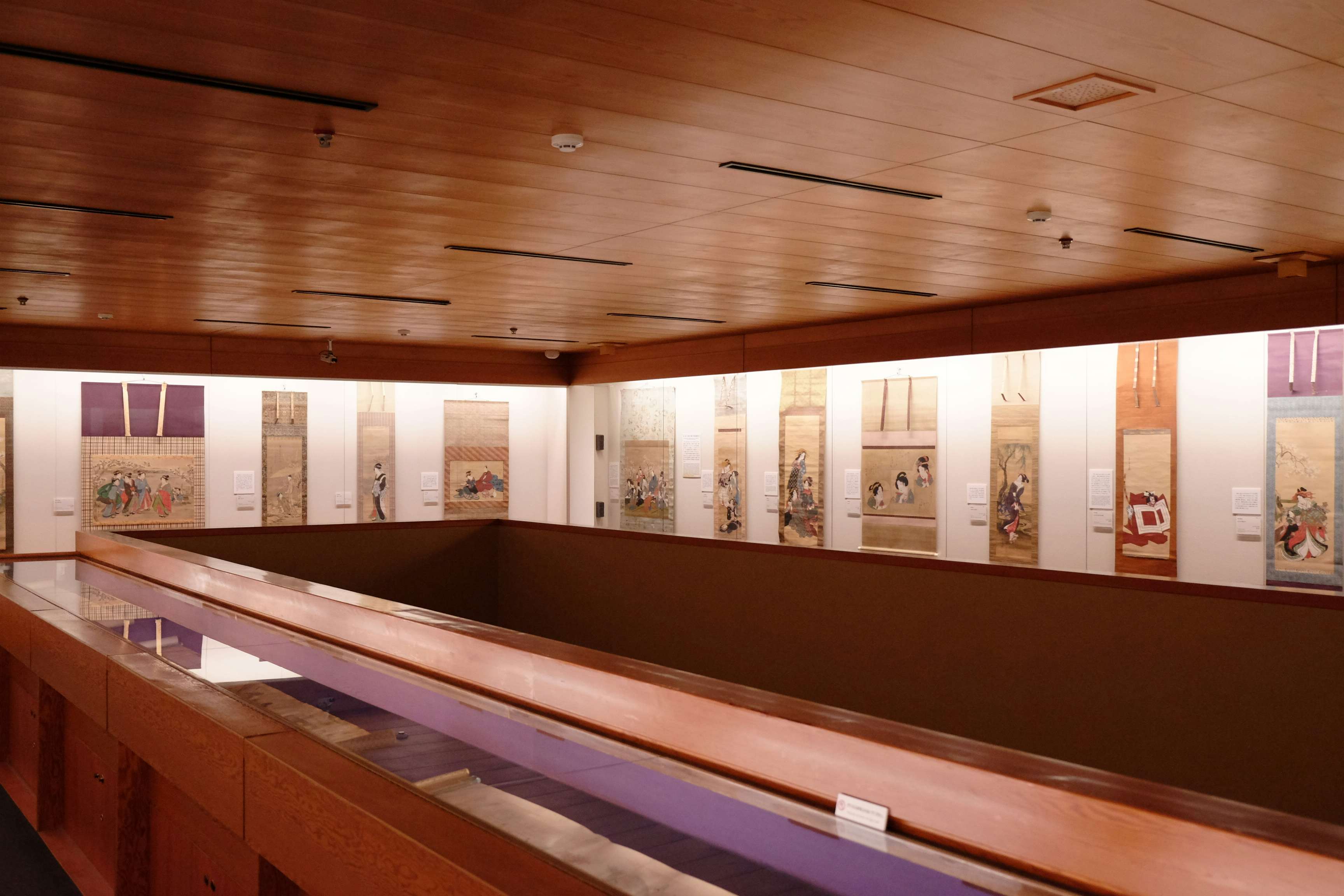 展示風景より、左から岩佐又兵衛《小町図》(1637〜50頃)、菱川師宣《遊女物思いの図》(1688〜1704頃)、菱川師秀《美人遊歩図》(1688〜1704頃)