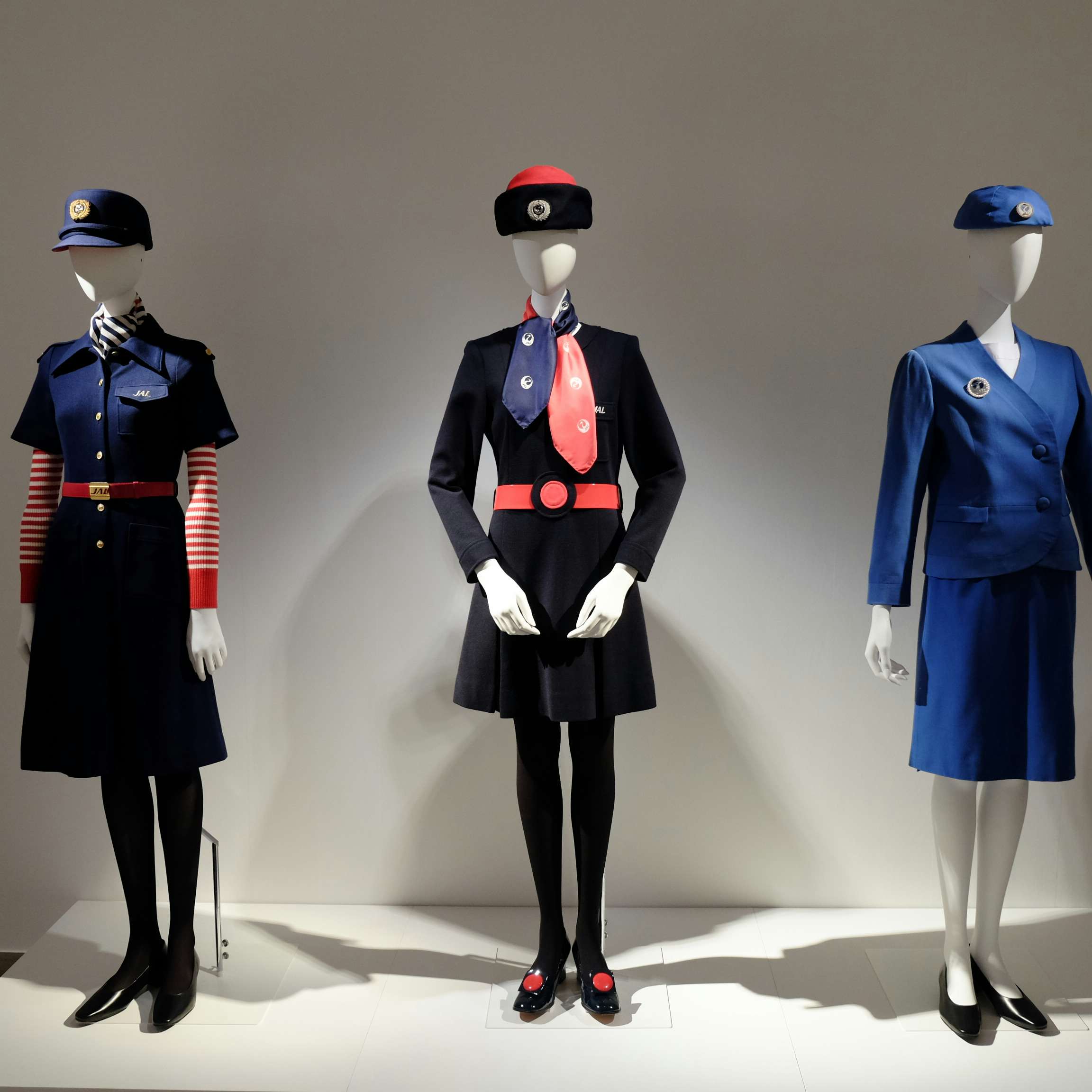 企業や団体のユニフォームも、森は数多く手がけている。バルセロナオリンピック(1992)時の日本選手団のものや、日本航空の4〜6代目の客室乗務員のものなど、森の仕事の幅を知ることができるユニフォームが多数展示される。