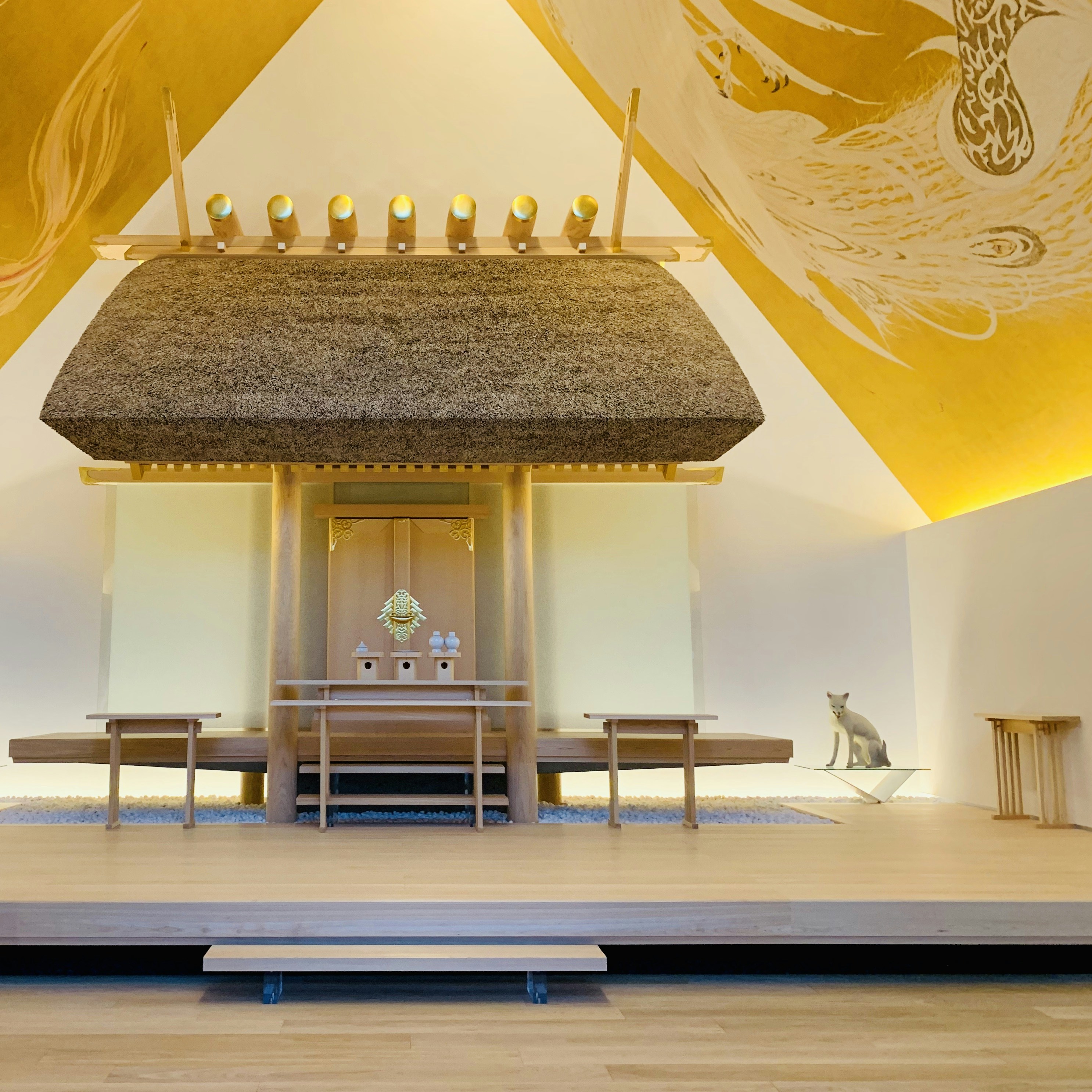 天井画は天野喜孝が、ニホンオオカミをモチーフにした狛犬は土屋仁応が手がけるなど、アートの要素が強い神社となっている。