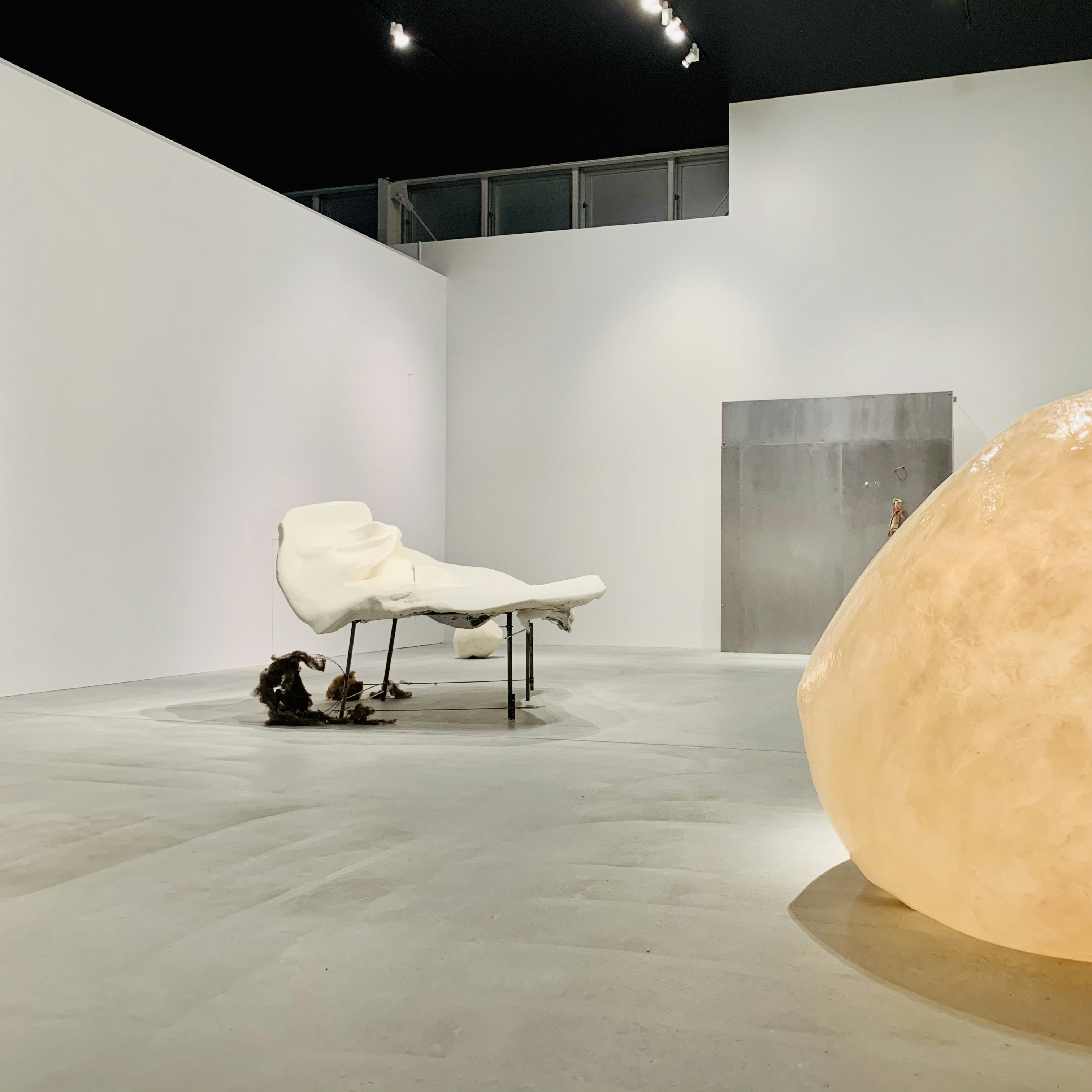 今回は、新作の映像と巨大なテトラポッドを組み合わせたインスタレーション《where are you now》を発表。馴染み深いテトラポッドが、体温を維持するための銀色のエマージェンシーシートによって覆われ、展示室の中心に佇んでいる。新型コロナの影響で、人に移動が拒否され、消費の物流だけが稼働する現在の状況を、「群」から離れたテトラポッドで表現した作品だ。潘は、「自粛期間中、自宅にいながらどこまで『外』が想像できるかを考えた。作品が不特定多数の鑑賞によって、見知らぬ他者のなかに存在し続けていくことを願っています」としている。