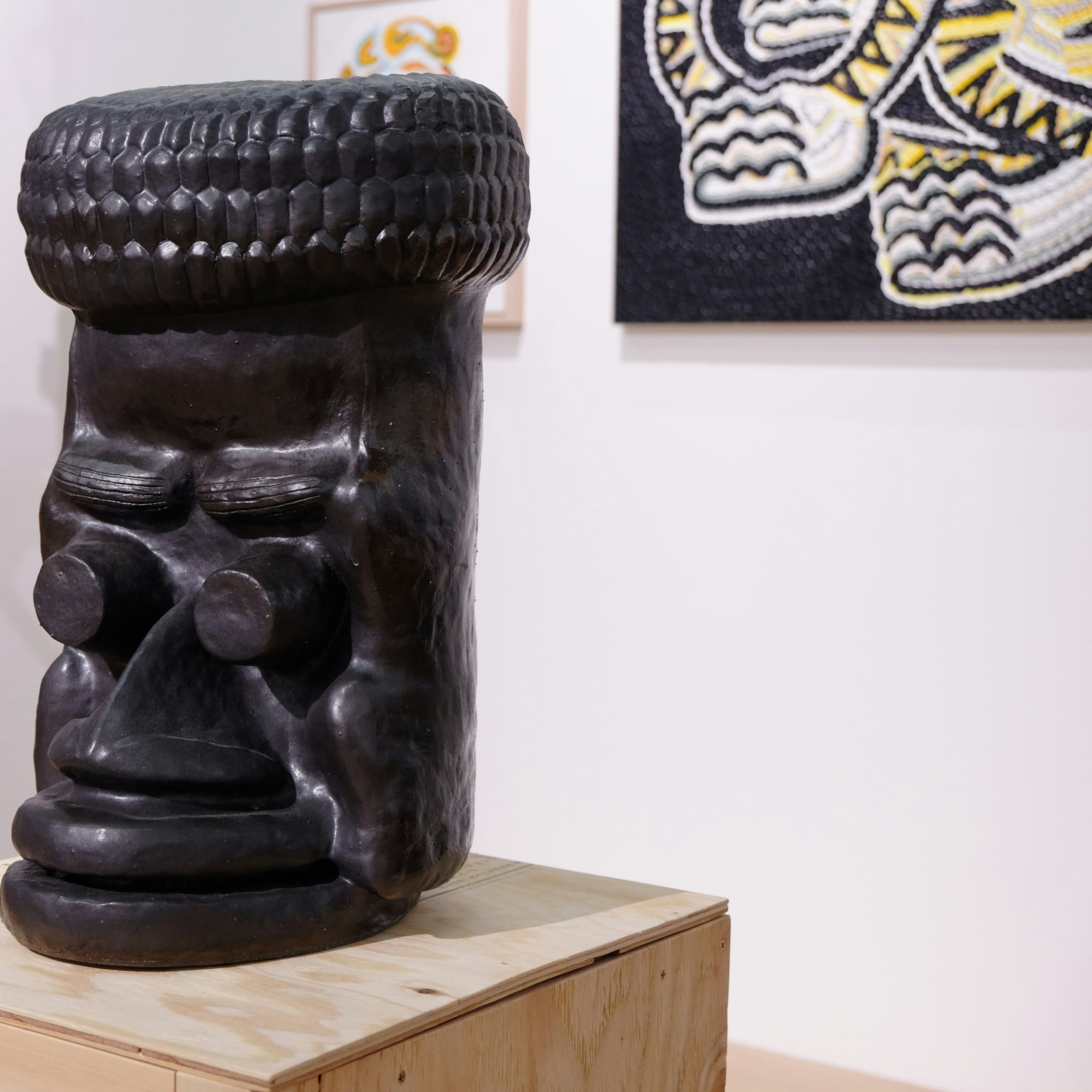 京都・浄土寺のArt Complex「浄土複合」にスペースを構えるFINCH ARTS。グラフィティカルチャーをベースに多彩な活動を見せるNAZEや、木炭によるドローイングを発展させて絵画や黒い陶土の陶作品を制作する西太志らの作品を展示。谷本真里、水谷昌人、飯田美穂の作品も織り交ぜながら、立体作品と平面作品それぞれの表現の可能性を見せる。