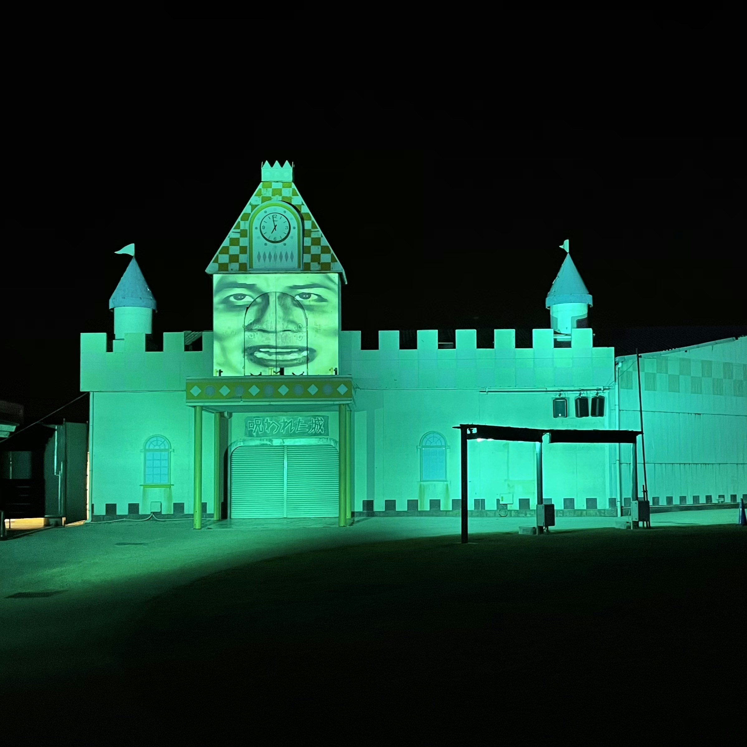 遊園地の中心にある観覧車と、その向こう側にある「呪われた城」の表面には、ふたつの巨大な「顔」が出現。これまで東京、箱根、京都などの大規模な建築物でライティングプロジェクトを発表してきた髙橋匡太によるプロジェクションマッピング新作の《たてもののおしばい 観覧車と呪われた城》だ。