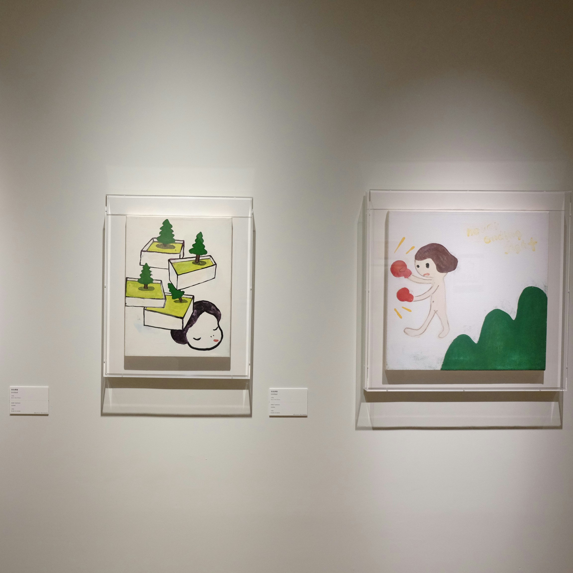 なかでも《Slash with a Knife》(1999)は、「A氏」が初めて購入した奈良作品だ。「A氏」は描かれている「女の子」の持つ闘争心に惹かれたといい、自身が仕事をするうえでもこの作品から勇気をもらうという。ほかにも「女の子」が描かれた作品は多く展示されるが、その姿や表情が時代によって変わっていった様も、知ることができるだろう。