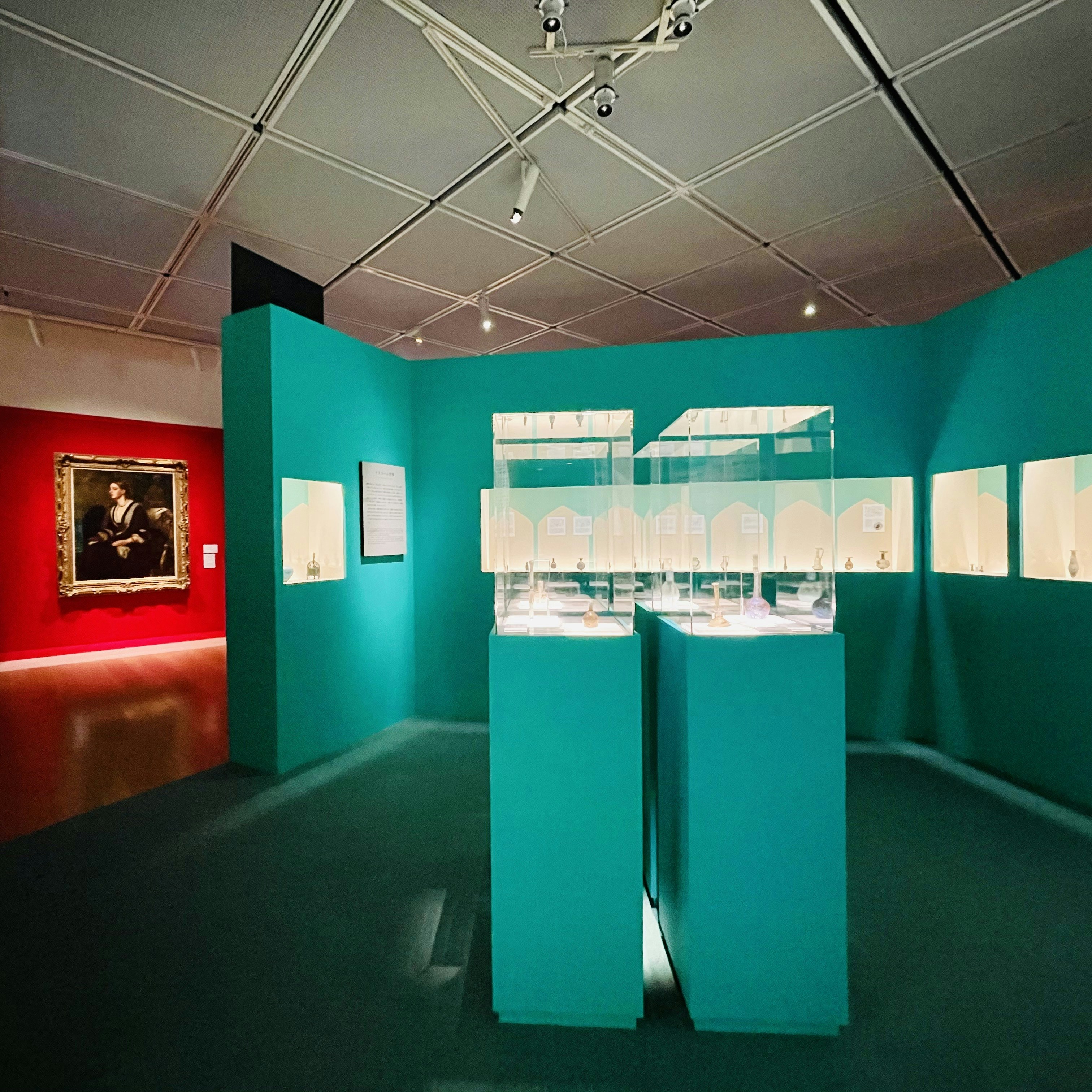 本章では、この歴史をたどるように、紀元前につくられた幾何学模様を刻む香油壺や1~2世紀頃の初期ガラス製の香油壺から始まり、17世紀以降につくられた香水瓶や関連資料を展示。