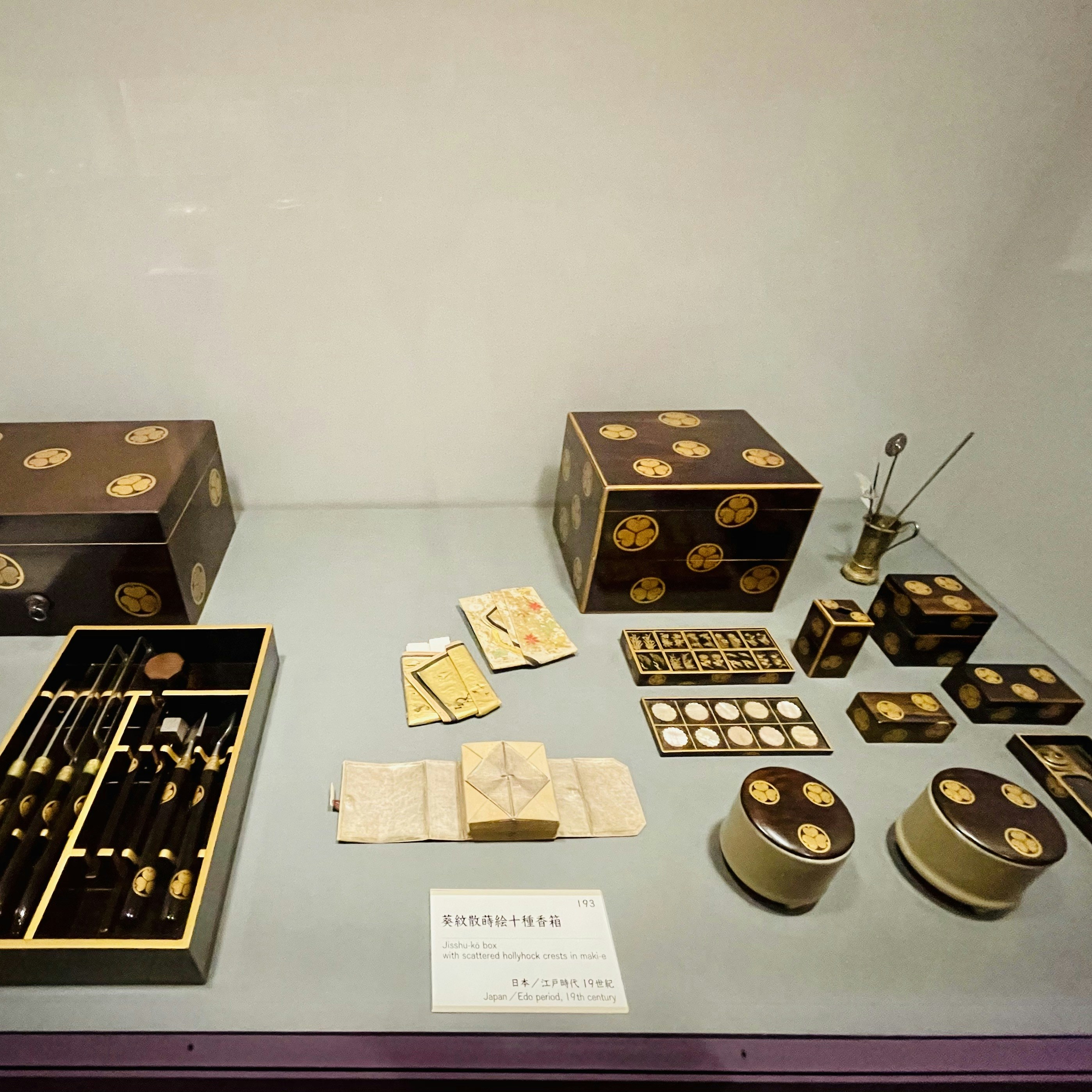 続く「第2章 日本の香り」は、その名のとおり日本の香りの歴史を紐解くもの。日本の香りの歴史はヨーロッパ諸国などに比べ遅く、仏教が伝来した6世紀以降に始まった。その文化は独自の道を歩み、宗教儀式や宮中から上流階級の遊びへと発展し、室町時代には「香道」という芸術までもが誕生した。