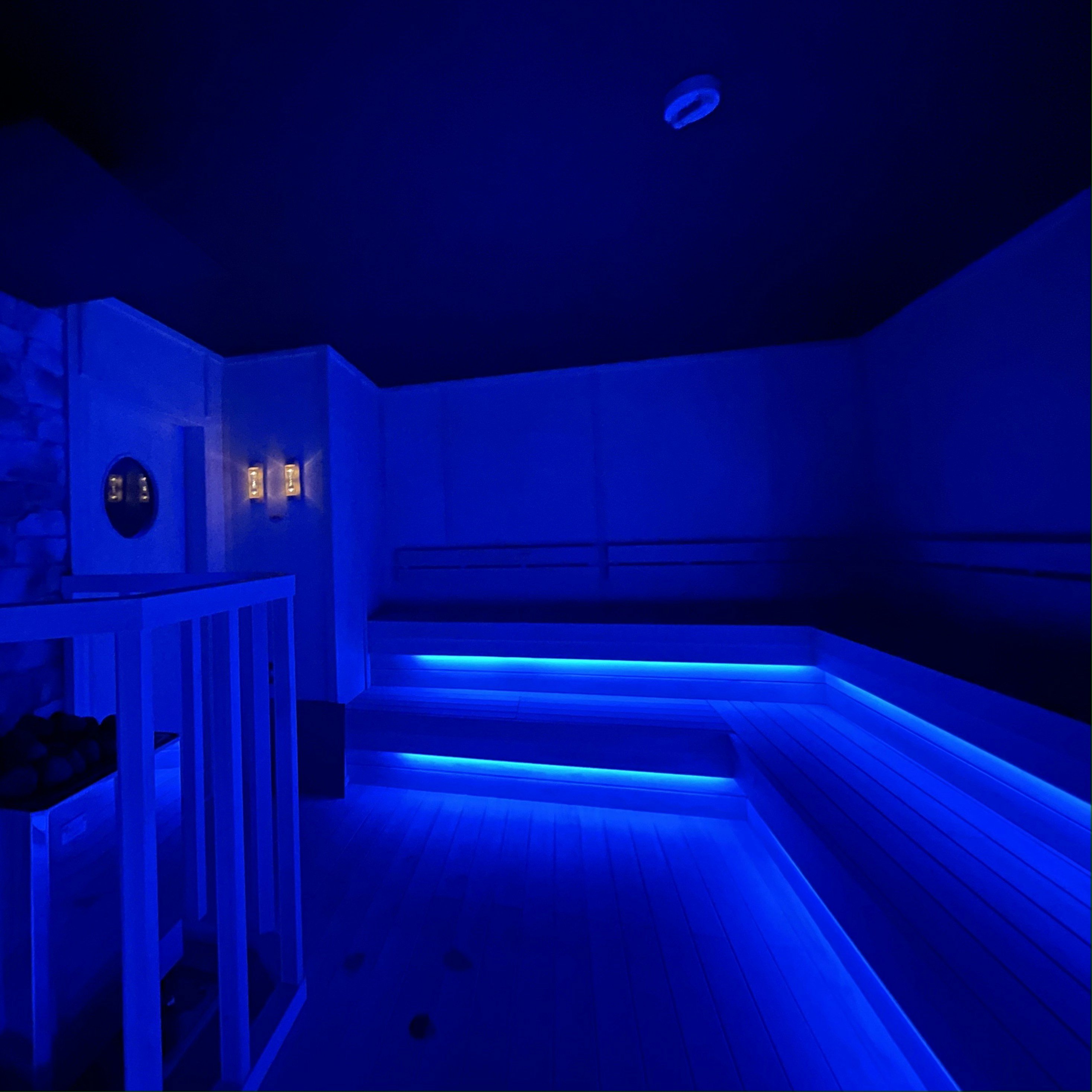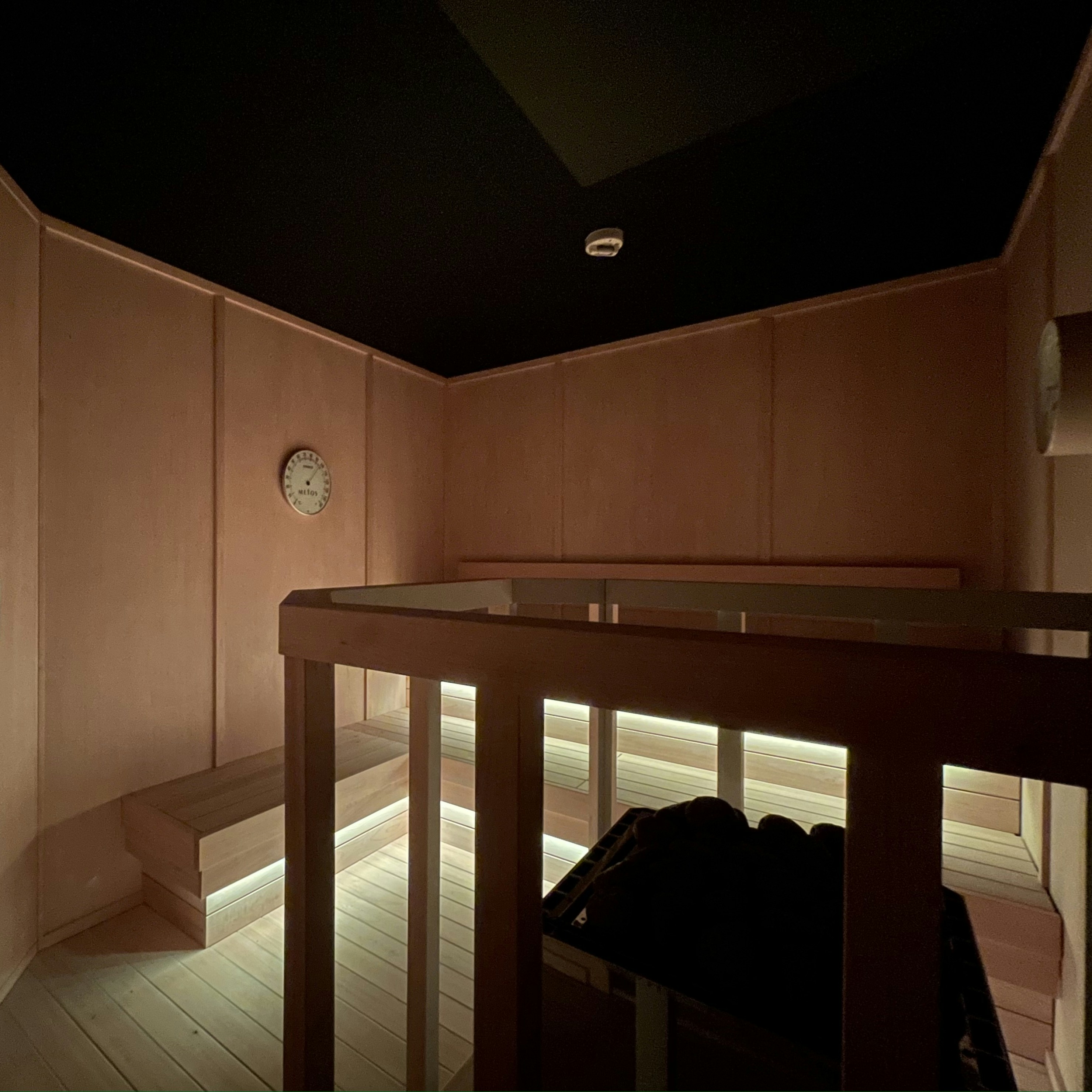 サウナエリアには女性専用サウナを含め、計7種類のサウナ室が備えられている。それぞれのサウナ室では、焚き火や水琴窟、洞窟の川、森の風にインスパイアされた環境音や音楽が流れており、ほうじ茶、白樺、松、ジュニパー、ジンジャーなどのアロマの香りが漂っている。また、音楽やアロマのないサウナ室もあり、中温多湿から超高温ドライまで、様々な温度・湿度のサウナを体験できる。