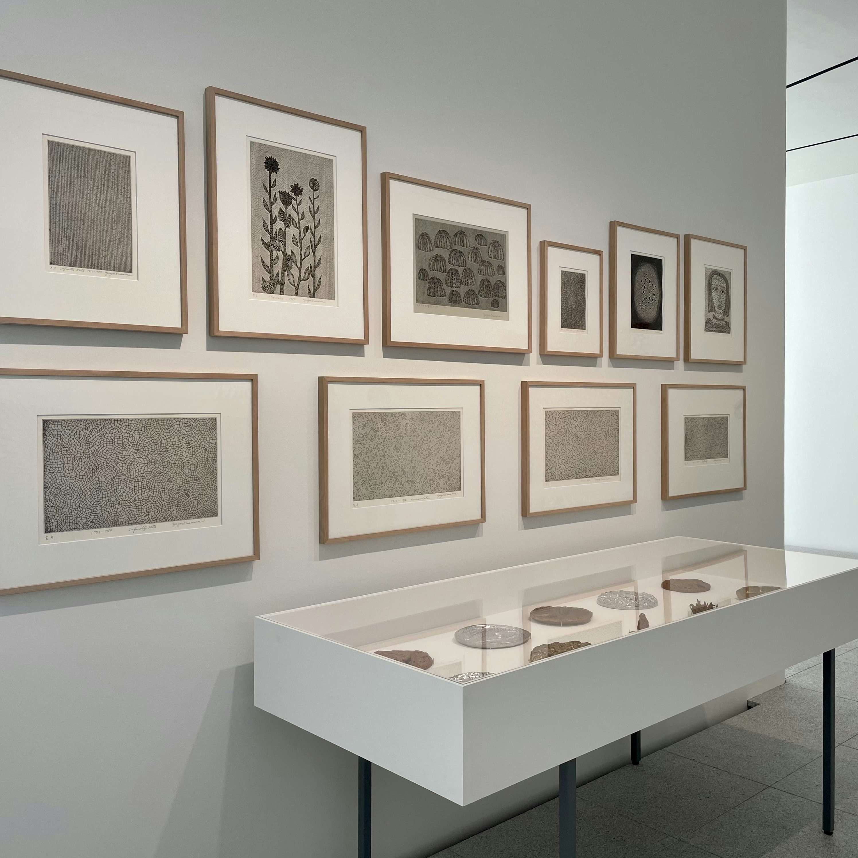 本展では、そんな草間のモノクローム作品を約67点紹介。世界初もしくは日本初公開の作品を含め、初期から現在に至るまで草間が一貫して追求してきた独自のモノクロームの世界を概覧する。