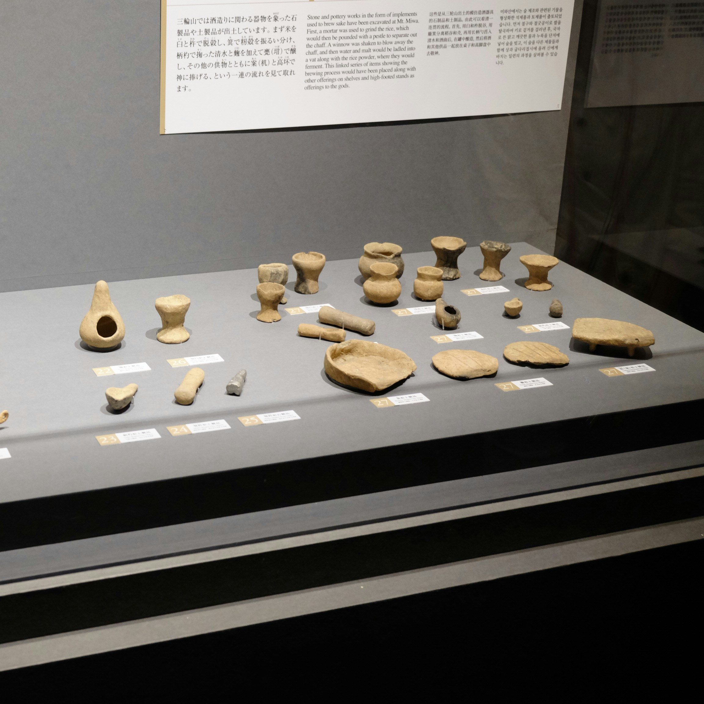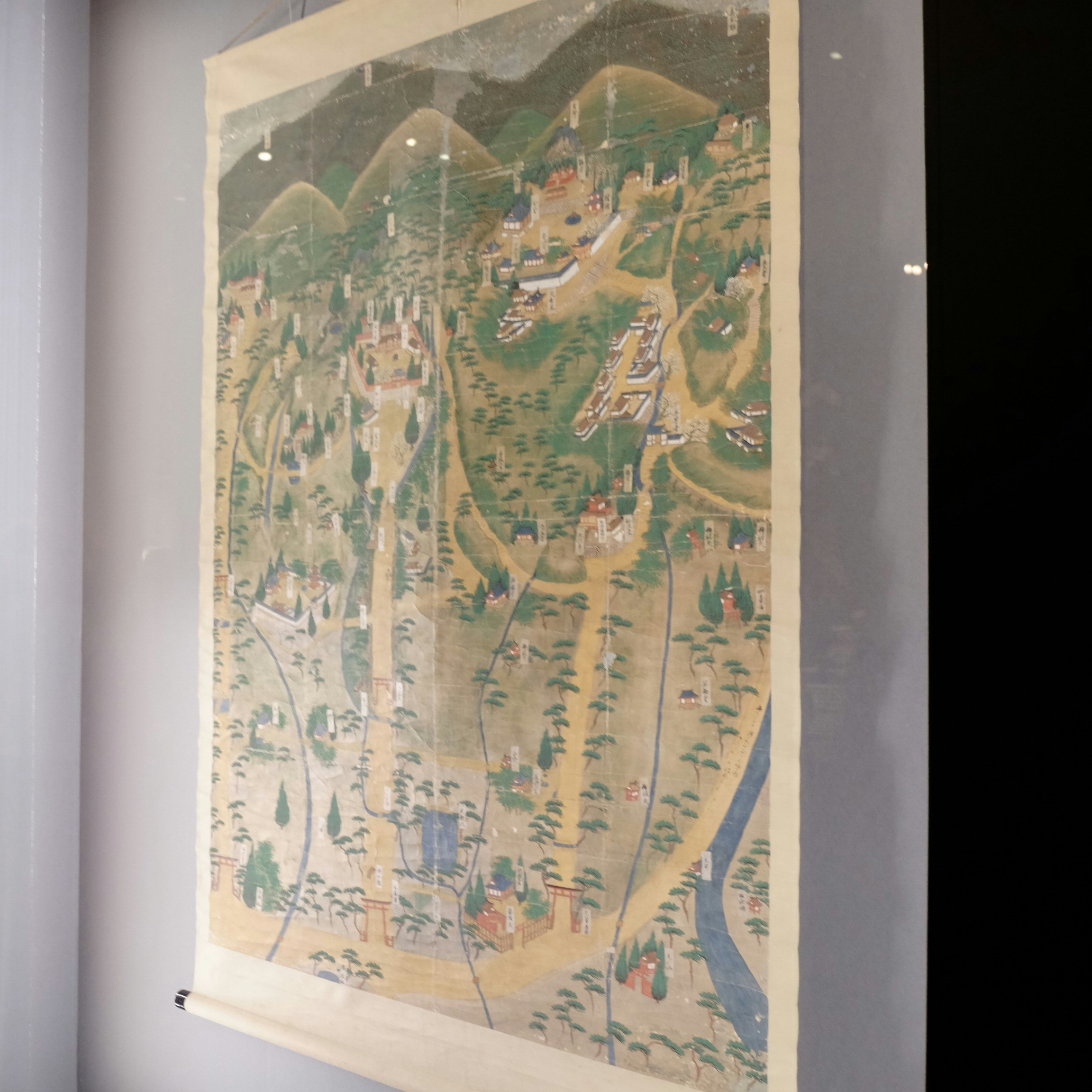 本展ではほかにも三輪山の信仰や祭祀をいまに伝える品々がそろう。古墳時代にまでさかのぼる三輪山の祭祀遺跡から出土した土器や土製品、大神神社に伝わっていた平安時代の《大国主大神立像》や《地蔵菩薩立像》(ともに12世紀、大神神社蔵)、鎌倉時代の祭祀用の木製盾、室町時代の三輪山や大神神社を描いた《三輪山絵図》(16世紀、大神神社蔵)など、そこからは長い歴史のなかで育まれた土地の文化を感じることができるだろう。