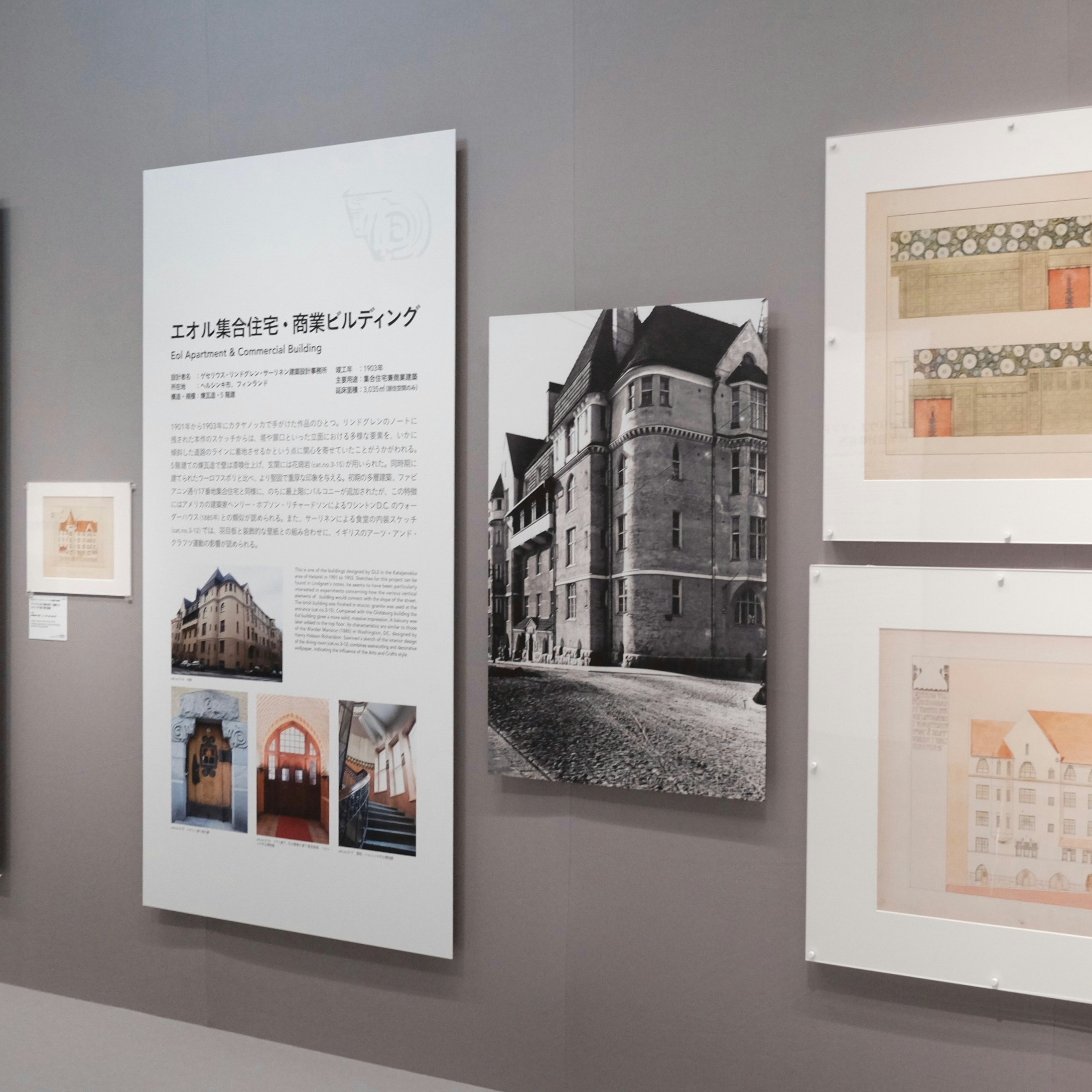 また、GLS建築設計事務所は住宅建築も得意とした。イギリスのアーツ・アンド・クラフツ運動の影響が見られる「エオル集合住宅・商業ビルディング」(1903)や、大ホールを有して空間の音響効果にまで腐心された「スール=メリヨキ邸」(1904)などは有名で、展示された平面図や立面図、透視図から、その内外装の仔細を知ることができるだろう。