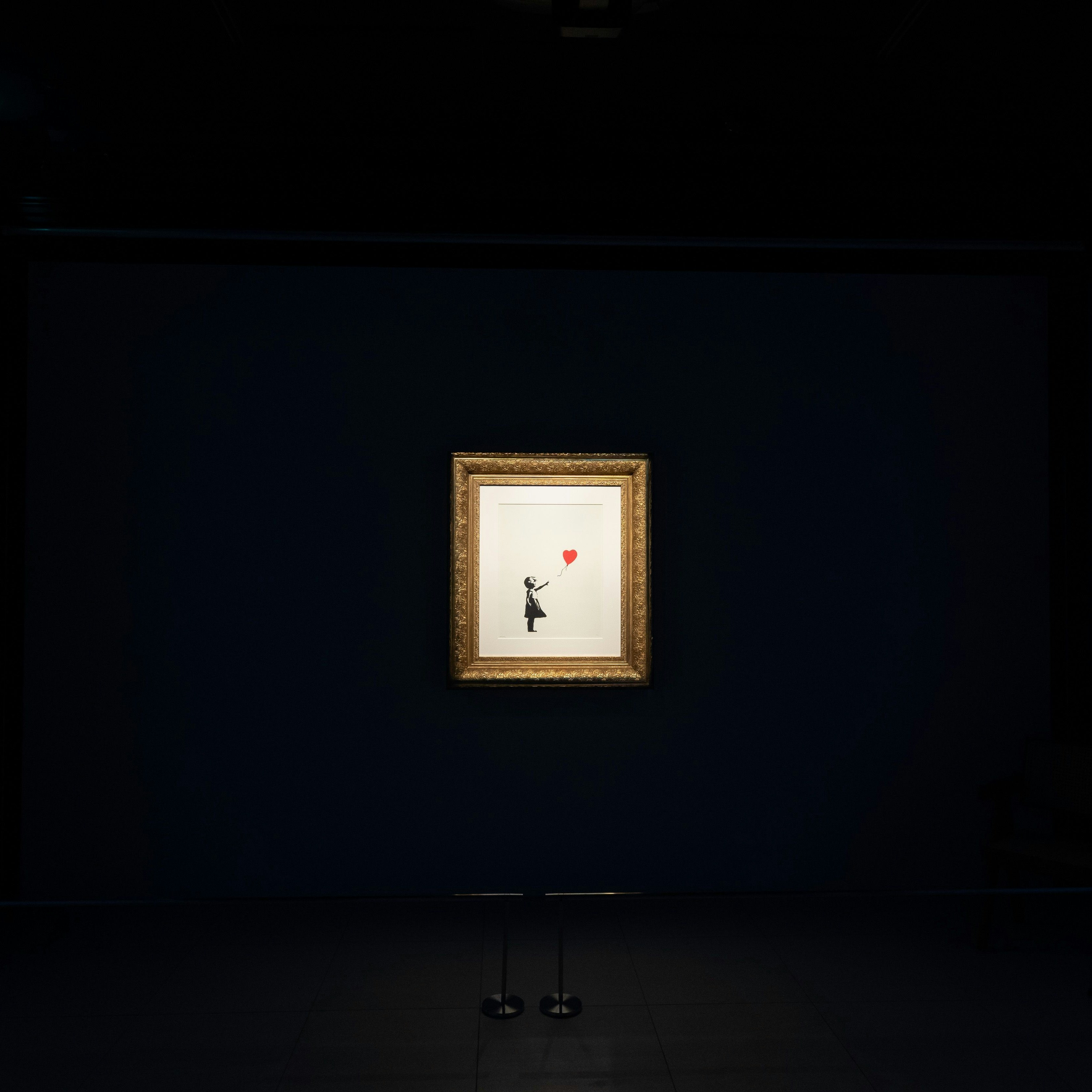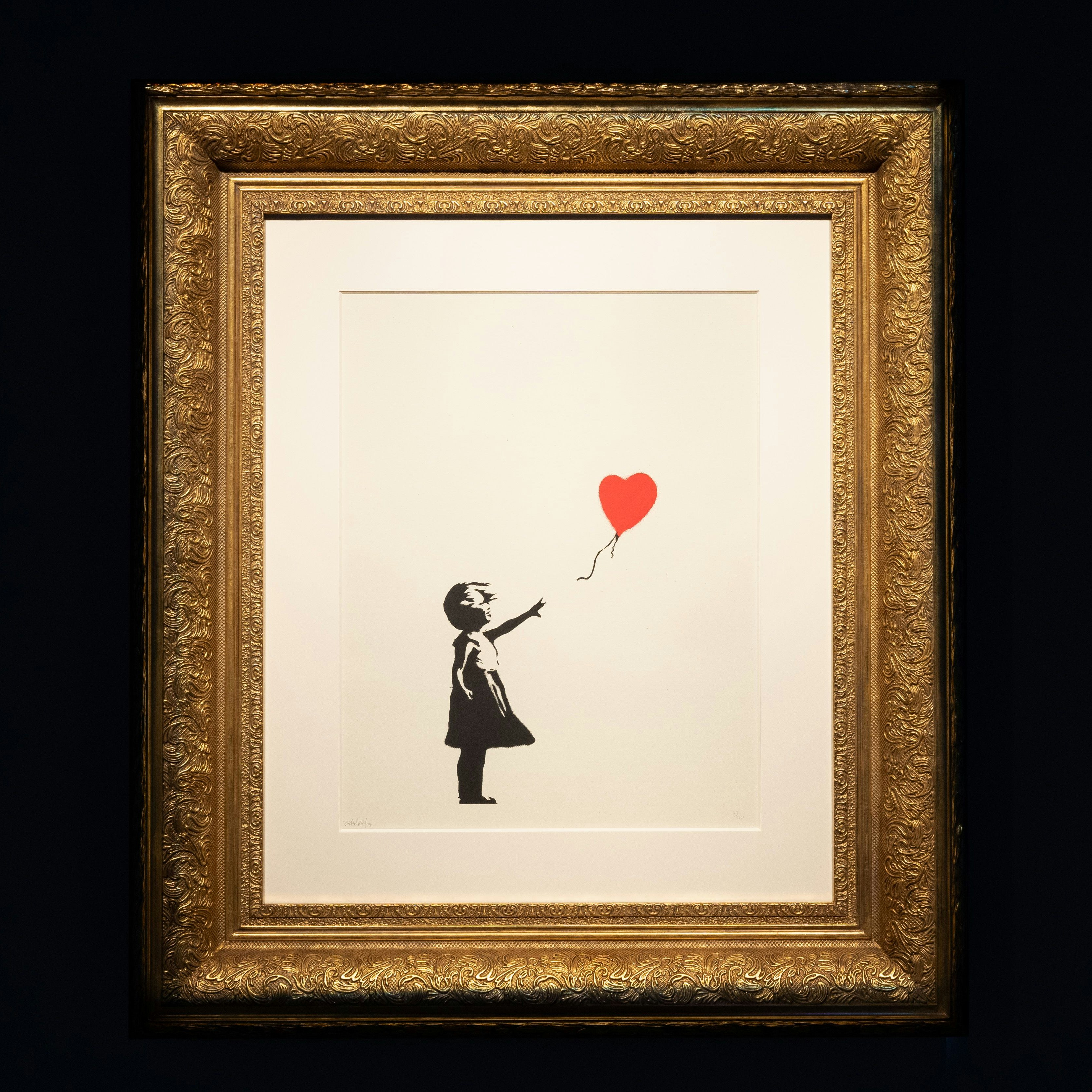風で飛んでいく赤いハート型の風船に向かって手を伸ばしている少女が描かれ、2002年にロンドンで生まれたあと、バージョンを変えながら世界中の街角に現れてきたこの作品シリーズ。18年のサザビーズ・ロンドンでの落札直後、同シリーズの作品がシュレッダー付きのフレームによって切り刻まれ、⼤きな話題となったことはまだ記憶に新しい。