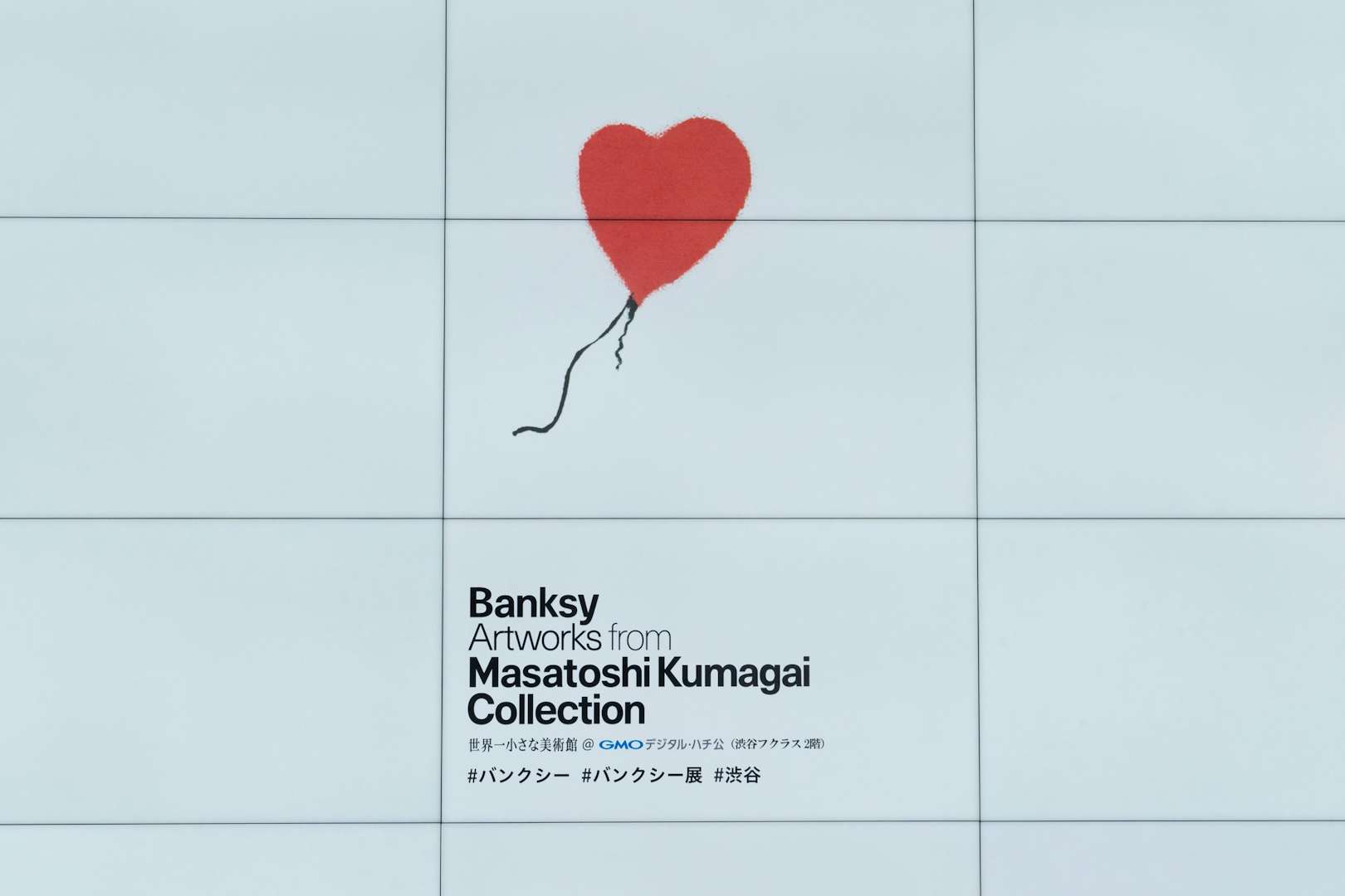 9月5日にオープンしたこのアートスペースでは、「Banksy Artworks from Masatoshi Kumagai Collection(バンクシー展)」をこけら落としとして開催。運営会社・GMOインターネットグループ代表の熊⾕正寿のコレクションから、バンクシーを語るうえで欠かせない代表作とも言える《風船と少女》(2004)が展示されている。