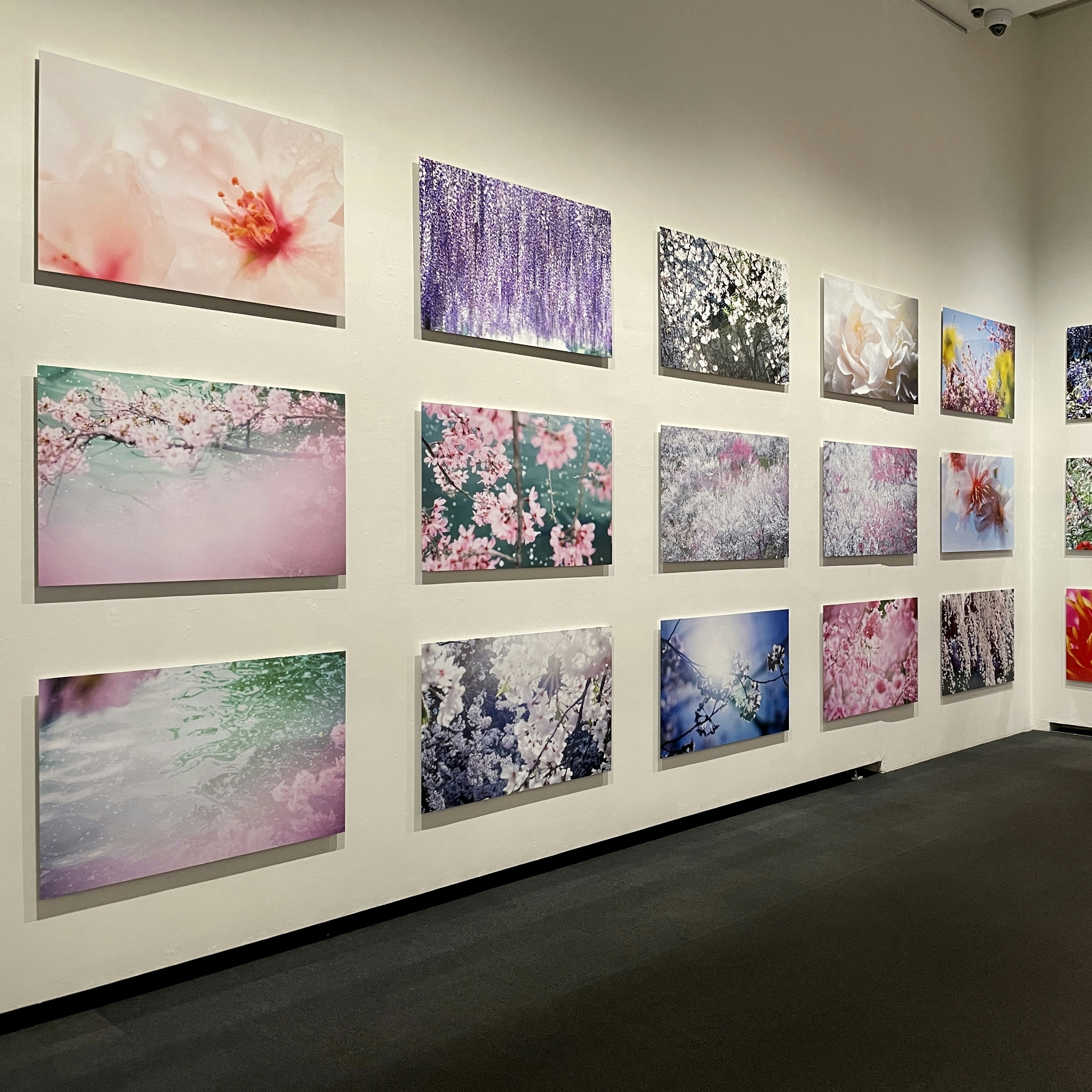 「Blooming Emotions」では、蜷川が撮影した生花の写真が飾られている。写真でとらえられた生花の多くは、自然のなかにあるがままに咲いている花ではなく、誰かに向けて育てられたものだという。2011年に発行された蜷川の写真集『PLANT A TREE』からの薄暗い桜の写真などに加え、新作を足して作家自身の感情にあわせた展示となっている。