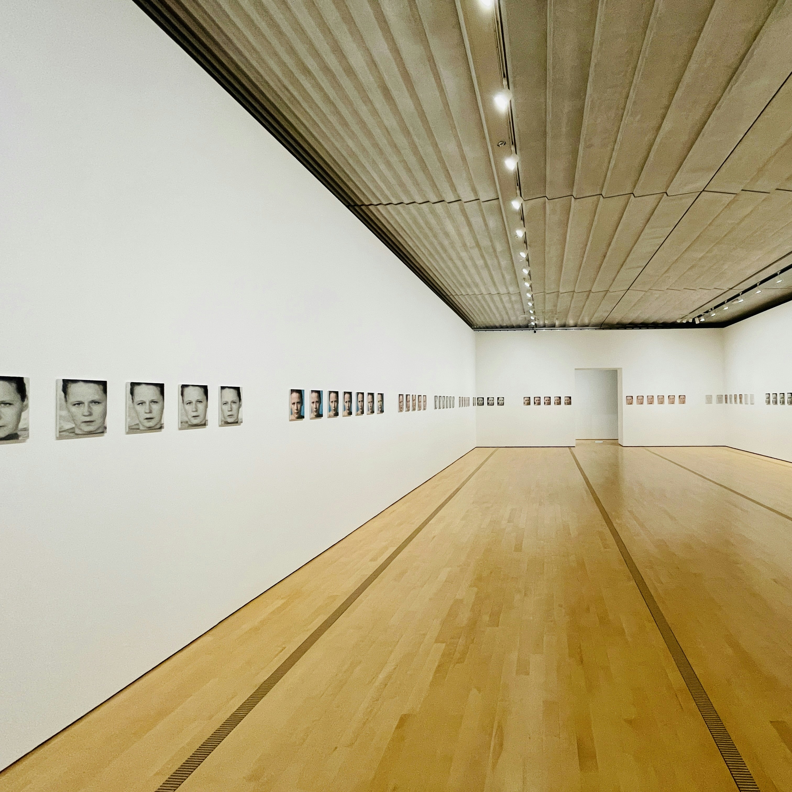 100枚ものポートレートが展示室の四方を取り囲むこの作品は、アイスランドの温泉で6週間にわたって女性の表情を記録し続けたもの。真っ直ぐこちらを見つめる女性の顔の数々だが、そこには100通りの表情がある。「同じように見えるものの中にこそ、絶え間ない変化が潜む」ということを示すこの作品群。1点1点じっくり鑑賞したい。
