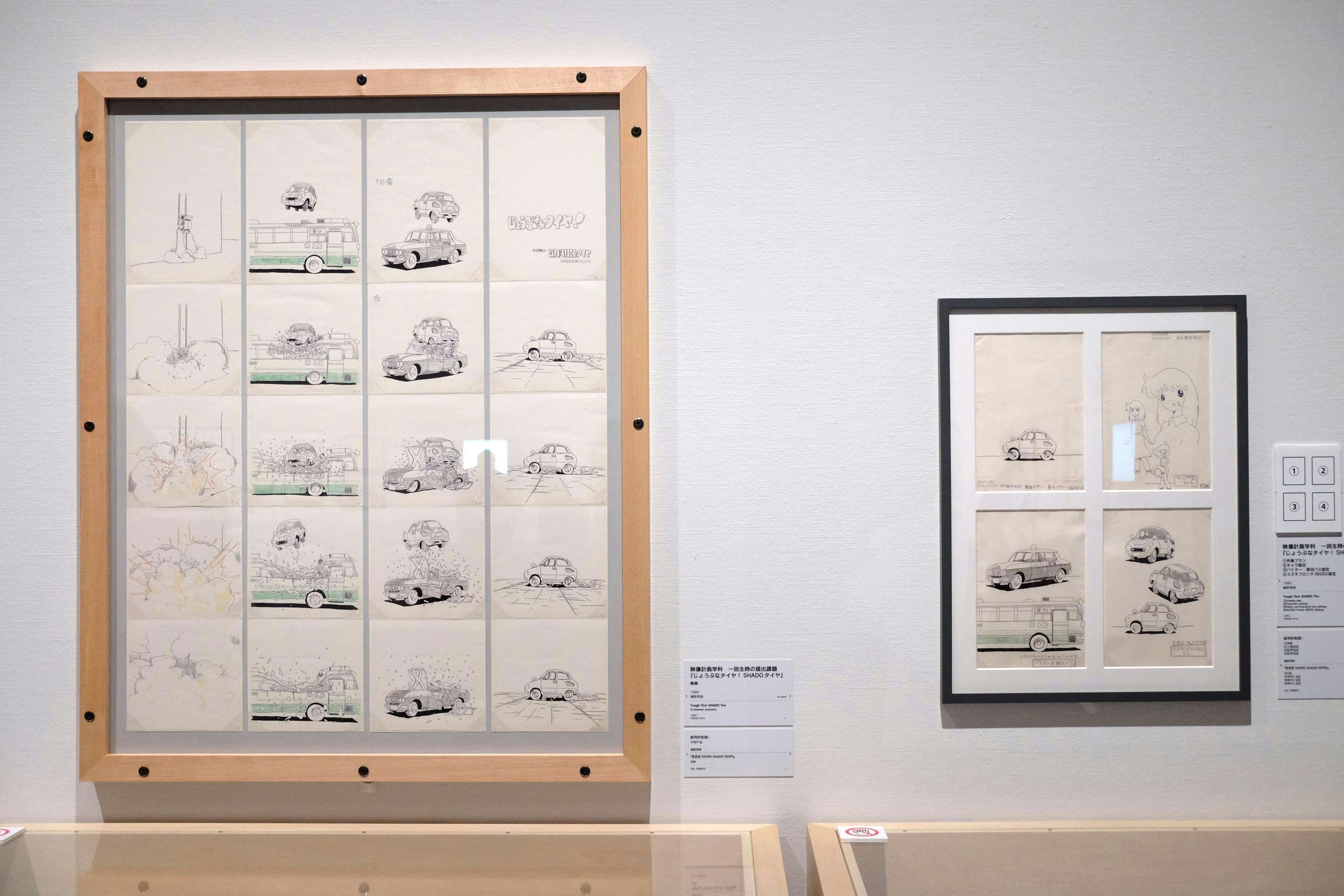 展示風景より、庵野秀明『じょうぶなタイヤ!SHADOタイヤ』(1980)の資料展示